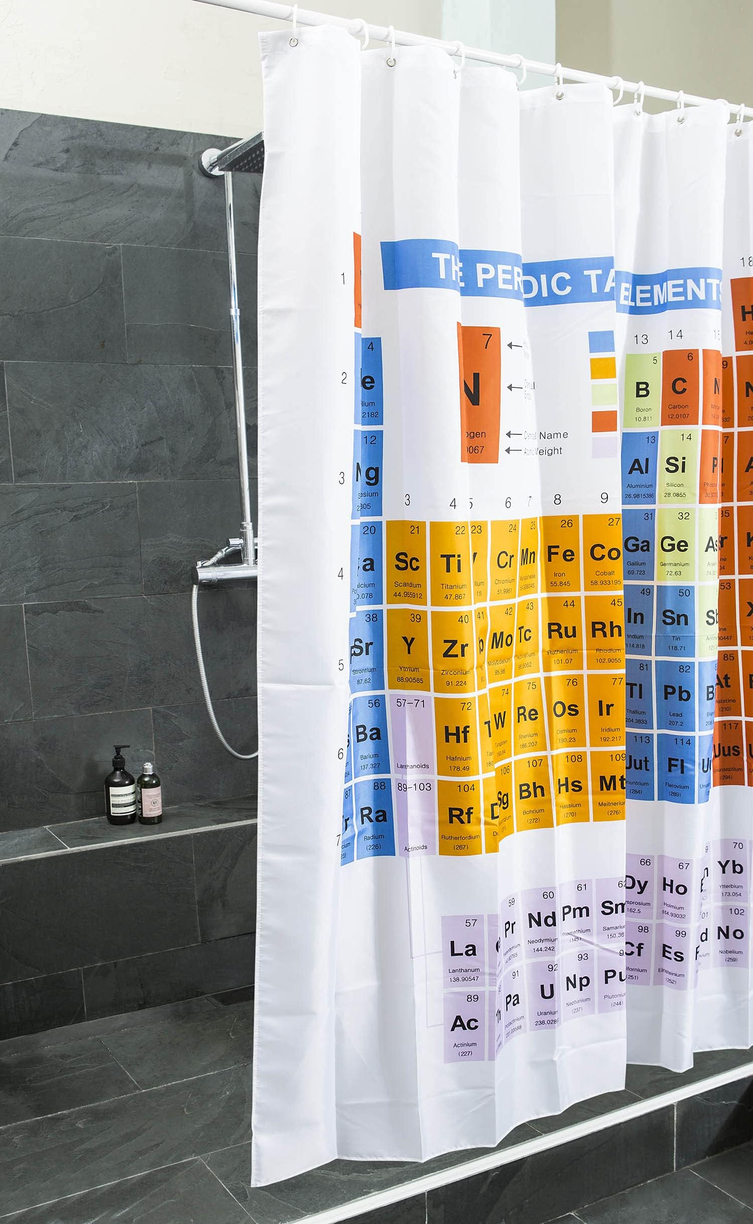 Chemie-Unterricht war noch nie so unterhaltsam! Dieser coole Duschvorhang mit dem kompletten Periodensystem bringt Wissenschaft in dein Badezimmer. Das 3D-Druckdesign ist nicht nur witzig, sondern hat auch knallige Farben, die nicht so schnell verblassen. Besonders praktisch: Der Vorhang ist komplett schimmelresistent und wasserdicht - keine lästigen Flecken mehr! Das Polyester-Material trocknet super schnell und verhindert so lästige Bakterienbildung. Mit 240x200 cm passt er auch an größere Duschwannen und kann sogar als Raumteiler oder Party-Deko verwendet werden. Die 12 mitgelieferten Haken machen die Montage zum Kinderspiel. Und wenn's mal dreckig wird? Einfach in die Waschmaschine stecken - der Vorhang kommt knitterfrei und wie neu wieder raus. Perfekt für Schüler, Studenten, Lehrer oder einfach alle, die was Lustiges im Bad haben wollen. Mach dein Badezimmer zum echten Hingucker!