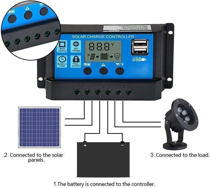 Der perfekte Regler für deine Solaranlage! Dieser Solar Laderegler mit 10A Leistung passt sich automatisch an 12V oder 24V Systeme an. Mit klarem Digital-Display das alle wichtigen Daten anzeigt. Das stylische blaugrüne Gehäuse sieht nicht nur gut aus - es ist auch praktisch um den Regler schnell zu finden. Umfassender Schutz: Kurzschluss, Verpolung, Überlastung und Leerlauf. USB-Ausgang: 5V/3A für Handy & Tablets. Arbeitet bei extremen Temperaturen von -35°C bis +60°C. Einfache Parameter-Einstellung: Ladespannung, Abschaltspannung etc. Ideal für Garten, Camping, Wohnmobil oder kleine Solaranlagen. Maximale PV-Spannung: unter 50V. Perfekter Ersatz für alte oder defekte Regler. Einfache Installation - folge einfach der Anleitung. Mit diesem Regler holst du das Maximum aus deiner Solaranlage raus! Inklusive Handbuch für den einfachen Start.