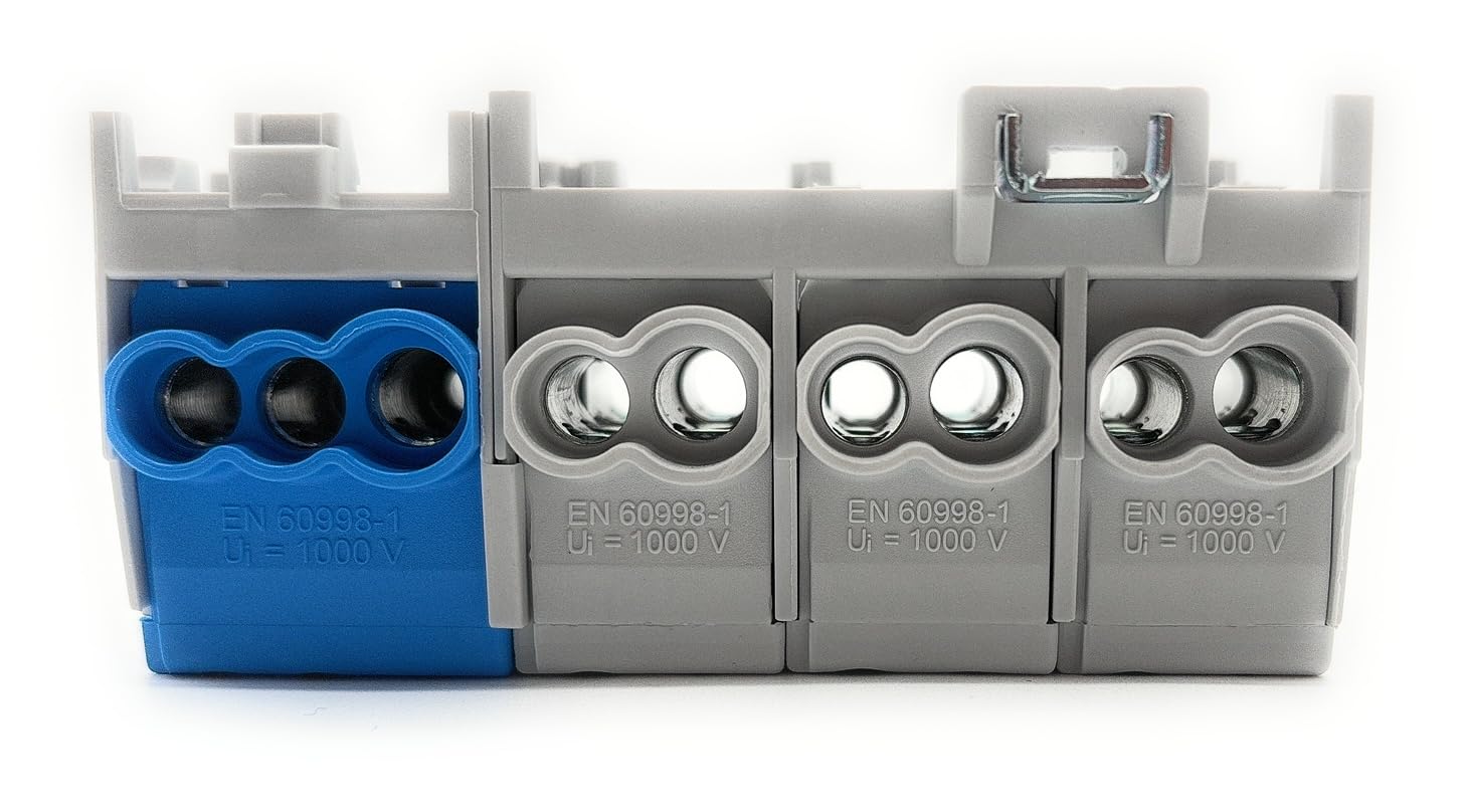 Für die professionelle Elektroinstallation: Diese berührungssichere Abzweigklemme von Pollmann macht alles mit! 4-polig in Grau, geeignet für Hauptleitungen von 1,5-25mm² und bis zu 8 Abzweigleitungen von 1,5-16mm². Schnellmontage auf DIN-Tragschiene 35 mm - praktisch und zeitsparend. Zertifiziert für 1000 V AC/DC, Überspannungskategorie III. Perfekt für Verteilerkästen und Schaltschränke. Die robuste Verarbeitung garantiert langjährige Zuverlässigkeit. Ein Profi-Werkzeug für Elektriker und Hobby-Elektriker, das Sicherheit und Funktionalität vereint. Einfach draufklicken und die Verdrahtung ist gesichert!
