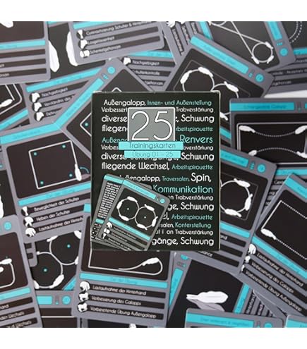 Diese 25 Trainingskarten für Stangenarbeit sind der perfekte Begleiter für jeden Reiter! Ob du Anfänger bist oder schon Erfahrung hast - hier findest du die richtigen Übungen für dich und dein Pferd. Die Karten sind robust und wasserfest, also perfekt für den Einsatz im Stall. Auf jeder Karte findest du klare Anleitungen, Schwierigkeitsgrade und Ziele - von verbesserter Hinterhandaktivität bis zu besserer Durchlässigkeit. Das Besondere: Wenn eine Übung nicht klappt, zeigen dir vorbereitende Übungen den Weg. Funktioniert alles super? Dann geht's mit anspruchsvolleren Varianten weiter. Super für alle Reitweisen geeignet - ob Dressur, Springen oder Western. Verbessere Takt, Rhythmus und Muskulatur deines Pferdes mit abwechslungsreichen Stangenübungen. Perfekt für das tägliche Training oder zur Vorbereitung auf Turniere. Mach dein Training abwechslungsreicher und effektiver!
