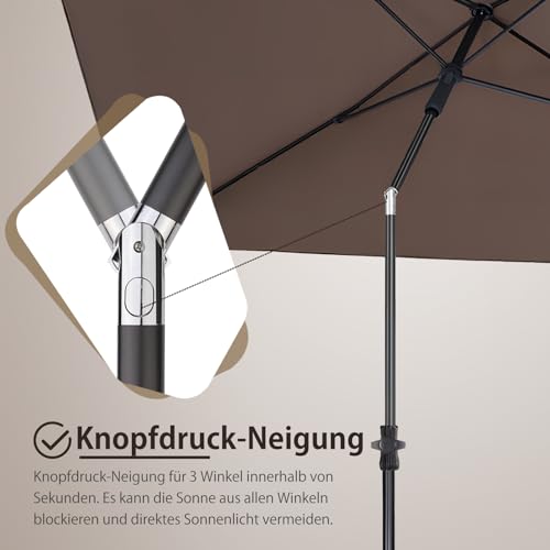 Perfekter Schattenspender für kleine Balkone und Terrassen! Dieser halbe Sonnenschirm in Weiß (auch in anderen Farben erhältlich) mit 250cm Länge und 130cm Breite bietet genau den Schutz, den du brauchst, ohne viel Platz wegzunehmen. Die rechteckige Form passt perfekt an die Wand und spart wertvollen Raum. Aus robustem Polyester gefertigt, ist der Schirm wasserabweisend, UV-beständig und leicht zu reinigen. Die Höhe lässt sich stufenlos von 1,8 bis 2,5 Meter verstellen - so findest du immer den optimalen Schattenwinkel. Mit 5 stabilen Stahlstangen und einer 3,4cm dicken Hauptstange steht der Schirm auch bei stärkerem Wind sicher. Perfekt für den Einsatz auf dem Balkon, der Terrasse, im Innenhof oder im Café. Einfach in den mitgelieferten Schirmständer stecken (Ständer separat erhältlich) und schon kannst du die Sonne genießen. Ein echter Alleskönner für alle, die auch an heißen Tagen nicht auf Komfort verzichten wollen!