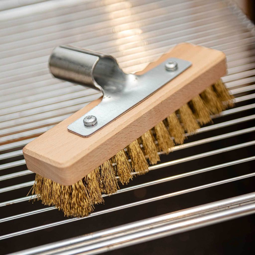Endlich eine Bürste, die wirklich was taugt! Mit 25 cm Breite macht sie richtig Dampf beim Saubermachen. Der Bürstenkopf aus Buchenholz und Messingborsten schrubbt auch eingebrannte Reste weg - und das mit nem cleveren 30° Winkel, um selbst in Ecken ranzukommen. Besonders praktisch: Der Aluminiumgriff lässt sich auf 77 cm, 115 cm oder 153 cm verlängern. Einfach zusammenschrauben, kein Werkzeug nötig! Auf der Rückseite ist noch ein Metallschaber für besonders hartnäckige Krümel. Nach dem Gebrauch einfach mit Wasser abspülen und trocken aufhängen. Perfekt für Pizzaöfen, Grills und Backsteine - macht Reinigen zum Kinderspiel!
