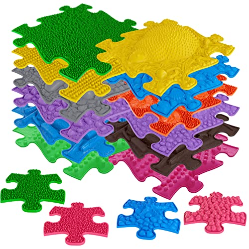 Diese Sensorik-Matten sind genial für die kindliche Entwicklung! Mit verschiedenen Strukturen fördern sie die taktile Wahrnehmung - also das Fühlen und Tasten. Kinder lernen spielerisch unterschiedliche Oberflächen kennen und verbessern ihre motorischen Fähigkeiten. Als Puzzlematten zusammensetzbar, je 25cm groß. Perfekt für Kindergarten, Therapie oder zu Hause. Macht nicht nur Spaß, sondern trainiert gleichzeitig Sinne und Bewegung! Die Kinder laufen, krabbeln oder sitzen darauf und entdecken die verschiedenen Strukturen. Fördert die Sinneswarnnehmung und macht dabei noch riesig Spaß! Einfach zusammensetzen und loslegen.