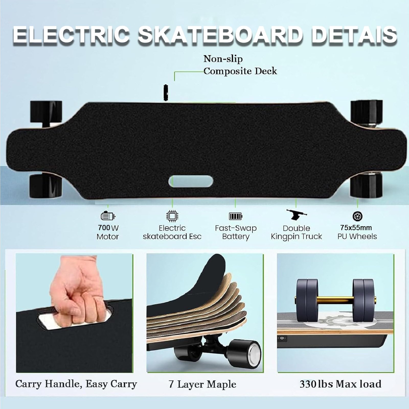 Elektro Longboard 700W - 25km/h Maximal, 150kg Tragkraft Für Erwachsene & Anfänger