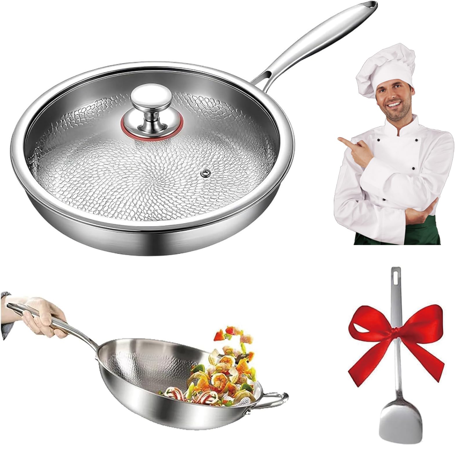 Koch-Profi gesucht? Diese 26cm Titan-Pfanne mit gehämmertem Muster ist ein absolutes Traumteil! Kratzfest, ohne schädliche Beschichtungen - gesundes Kochen pur. 30% leichter als Edelstahl, aber genauso robust. Heizt 50% schneller auf und verteilt die Hitze super gleichmäßig. Für alle Herdarten inklusive Induktion geeignet, backofenfest bis 260°C. Die natürliche Antihaftwirkung macht das Reinigen zum Kinderspiel. Ein Küchenheld fürs Leben - ob scharfes Anbraten oder sanftes Dünsten. Investition die sich lohnt!
