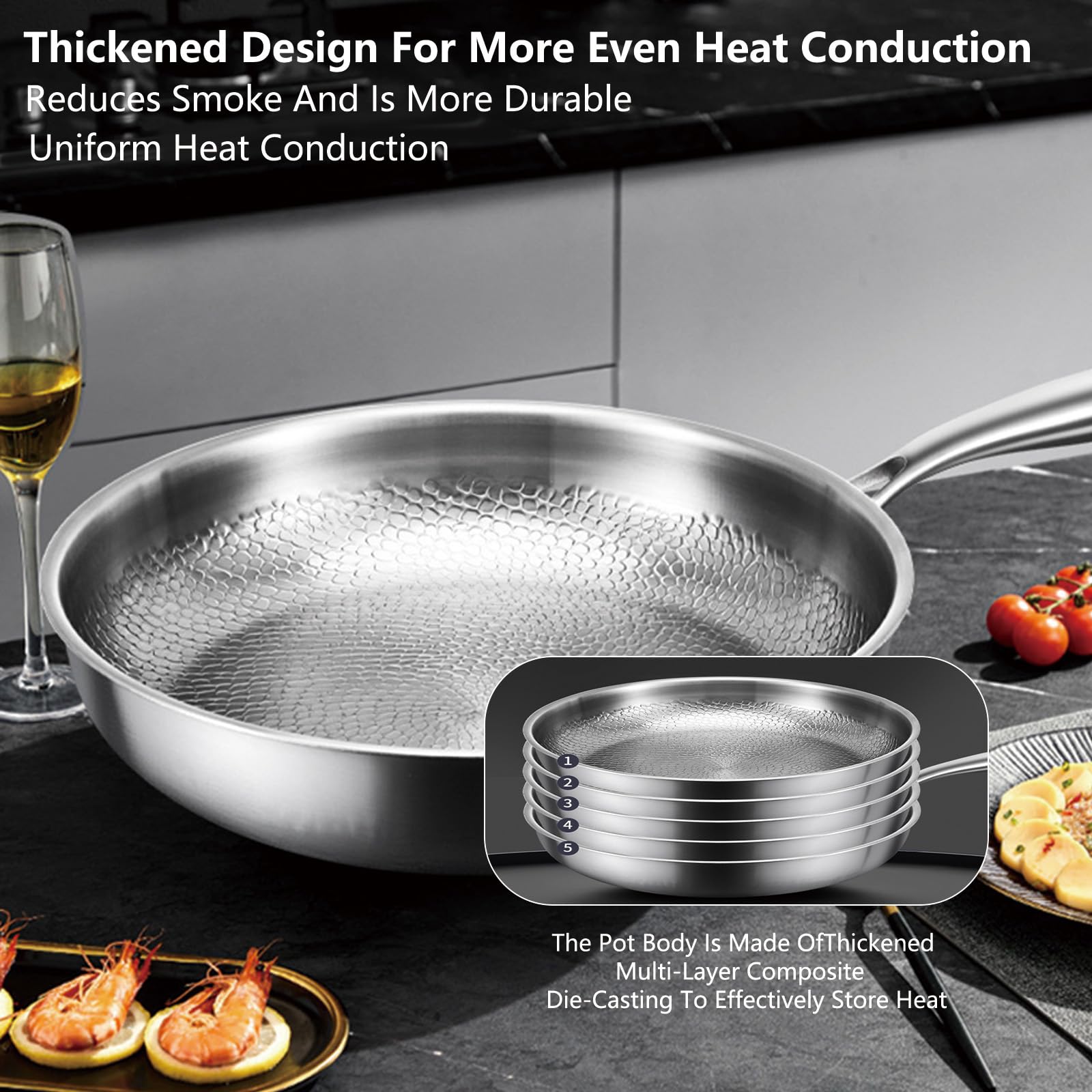 26CM Titan Pfanne Gehämmert - Kratzfeste Antihaftbeschichtung