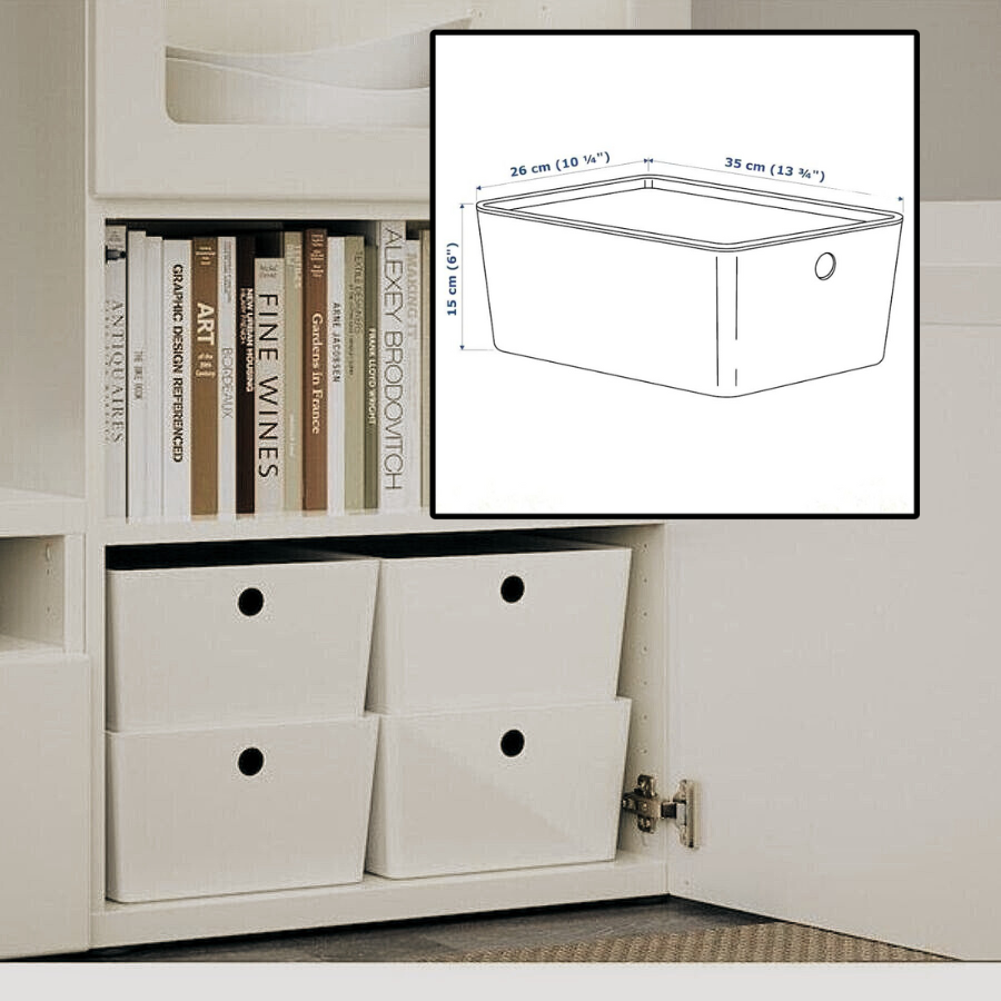 Ordnung muss sein - und mit der IKEA KUGGIS Box wird's ganz einfach! Die praktische Aufbewahrungsbox in Hellgrau mit den Maßen 26x35x15cm bringt System in deine Schränke und Regale. Der passende Deckel schützt vor Staub, und das Griffloch macht das Herausziehen zum Kinderspiel. Perfekt für Kleidung, Spielzeug, Bürobedarf oder Bad-Utensilien. Stapelbar und vielseitig einsetzbar - ob im Kinderzimmer, Home-Office oder Badezimmer. Einfach befüllen, verschließen und sich über mehr Ordnung freuen!