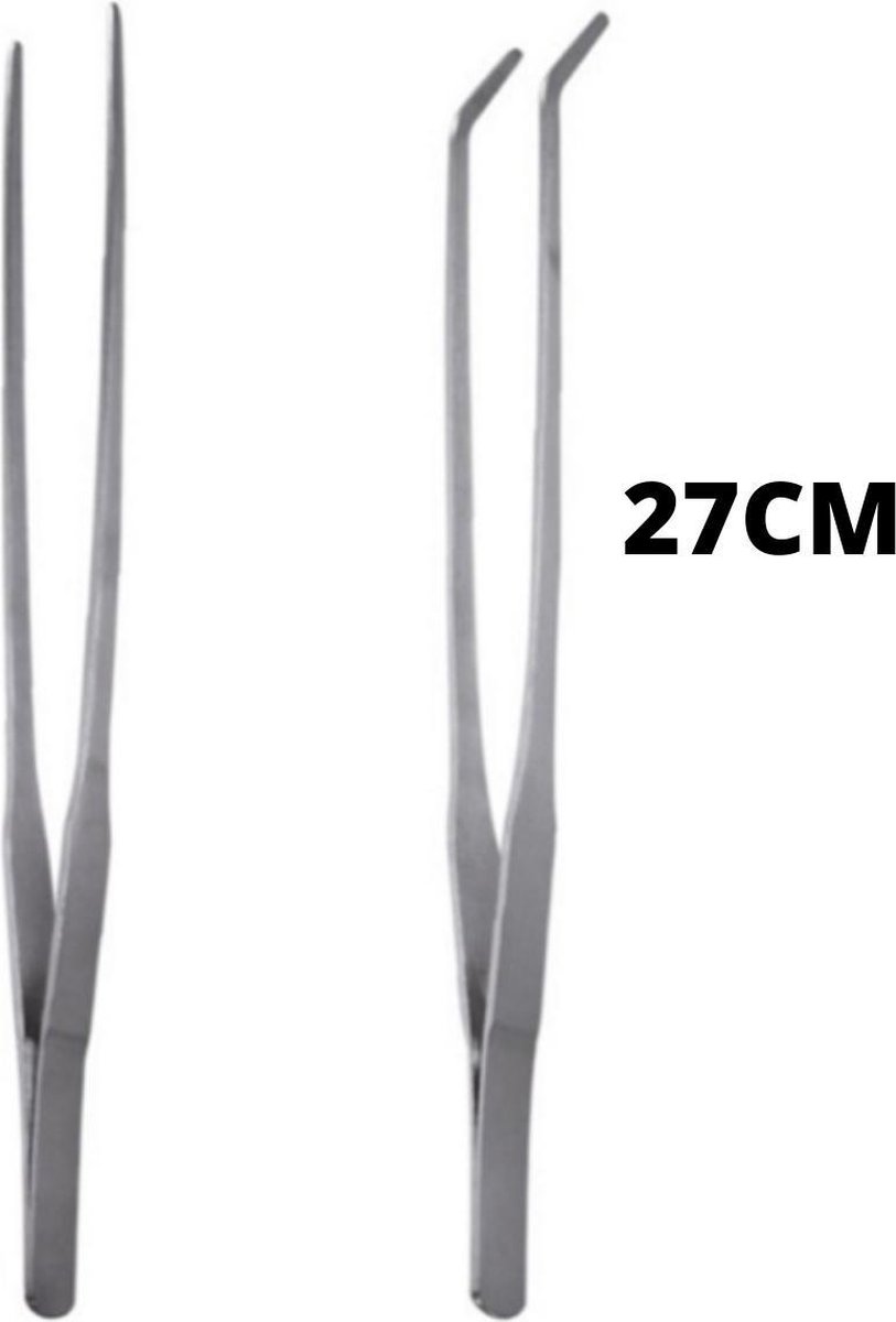 2 Aquarium Pinzetten 27cm Edelstahl - Gerade & Gebogen Mit Gummispitze