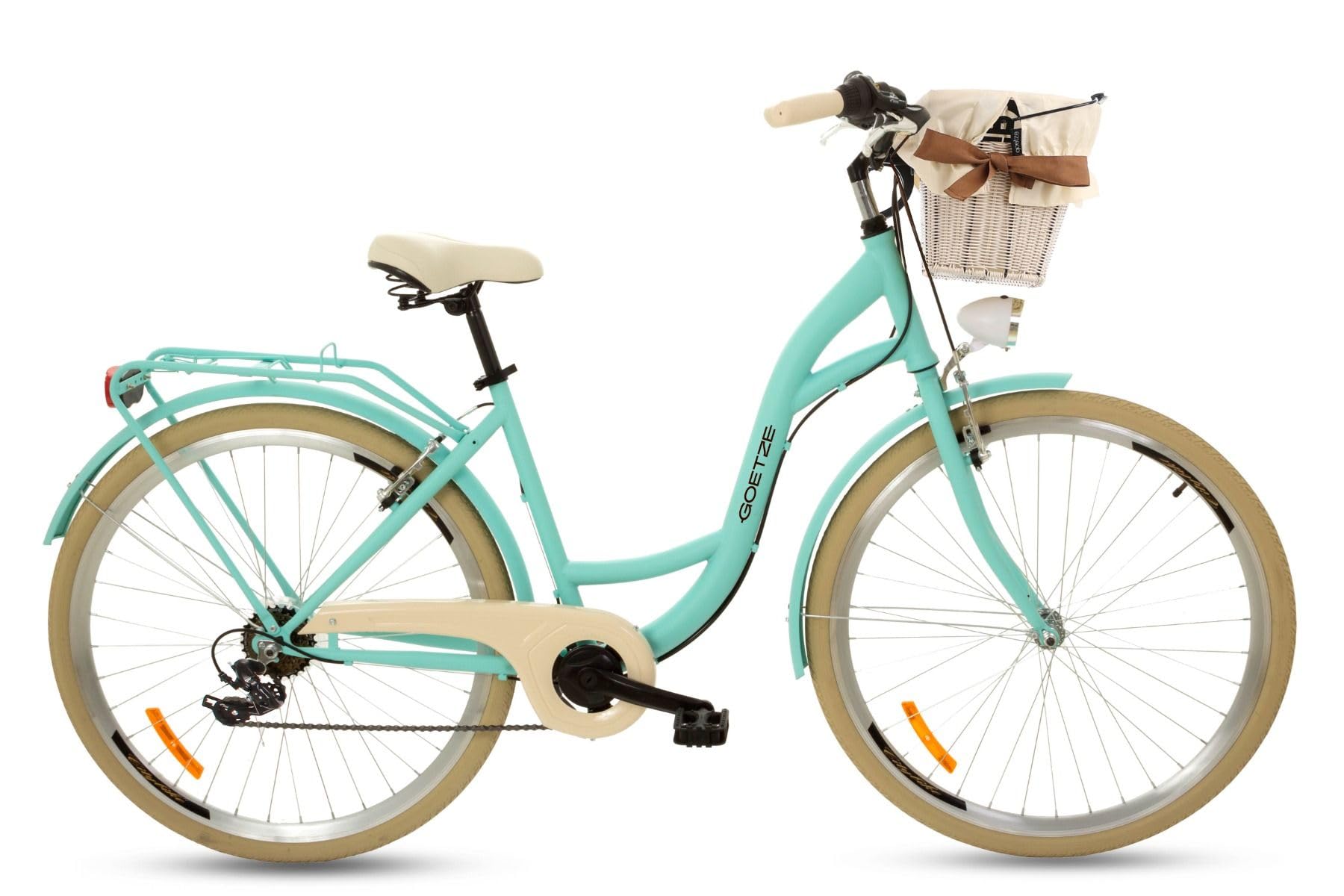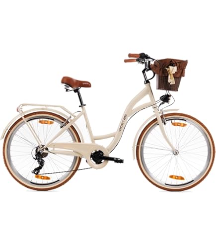 Perfekt für die Stadt! Das Goetze Mood Damenrad ist dein stylischer Begleiter für jeden Tag. Als Tiefeinsteiger super easy auf- und abzusteigen - auch im Rock oder Kleid. Mit 7-Gang Shimano-Schaltung meisterst du jeden Hügel, die V-Bremsen sorgen für Sicherheit bei jedem Wetter. Komplettausstattung inklusive: LED-Beleuchtung vorne/hinten, Schutzbleche, Gepäckträger und süßer Rattankorb mit Stoffeinsatz. Der 18 Zoll Stahlrahmen gibt dir Stabilität und Komfort. 90% vormontiert - du kannst fast sofort losfahren. Ob zum Einkaufen, zur Arbeit oder für gemütliche Radtouren - mit diesem Bike machst du immer eine gute Figur!