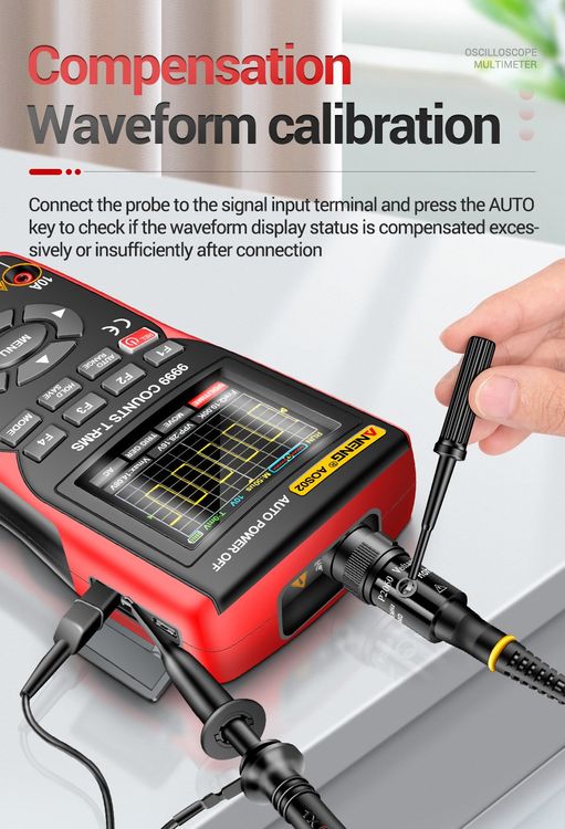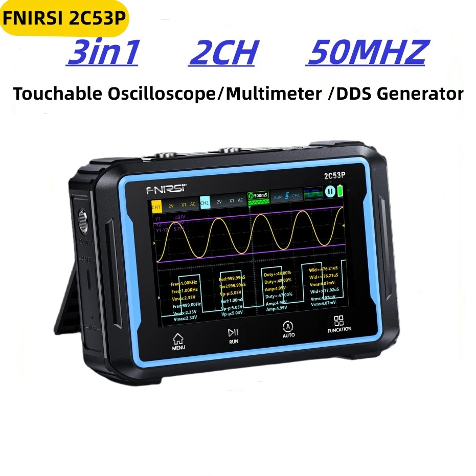 Professionelle Messtechnik für Hobby und Beruf! Dieses FNIRSI 2C53P Oszilloskop mit 7 Zoll Touchscreen ist ein echtes Allround-Talent. Mit 50 MHz Bandbreite und 250 MSa/s Abtastrate misst es präzise auch schwache Signale auf Millivolt-Ebene. Das besondere: Integrierter Funktionsgenerator mit Sinus-, Rechteck- und anderen Wellenformen bis 10 MHz. Plus vollwertiges Multimeter für Spannung, Strom und Widerstand. Der eingebaute 4000 mAh Akku macht es mobil und unabhängig. Mit Zweikanal-Betrieb, 64 kByte Speichertiefe und automatischer Trigger-Funktion. Perfekt für Elektronik-Entwicklung, Reparaturen oder Ausbildung. Im Lieferumfang: 2x P6100 Sonden, Typ-C-Kabel, Multimeter-Stifte und Krokodilklemmen. Mach deine Elektronik-Projekte präziser - bestell dieses vielseitige Messgerät!
