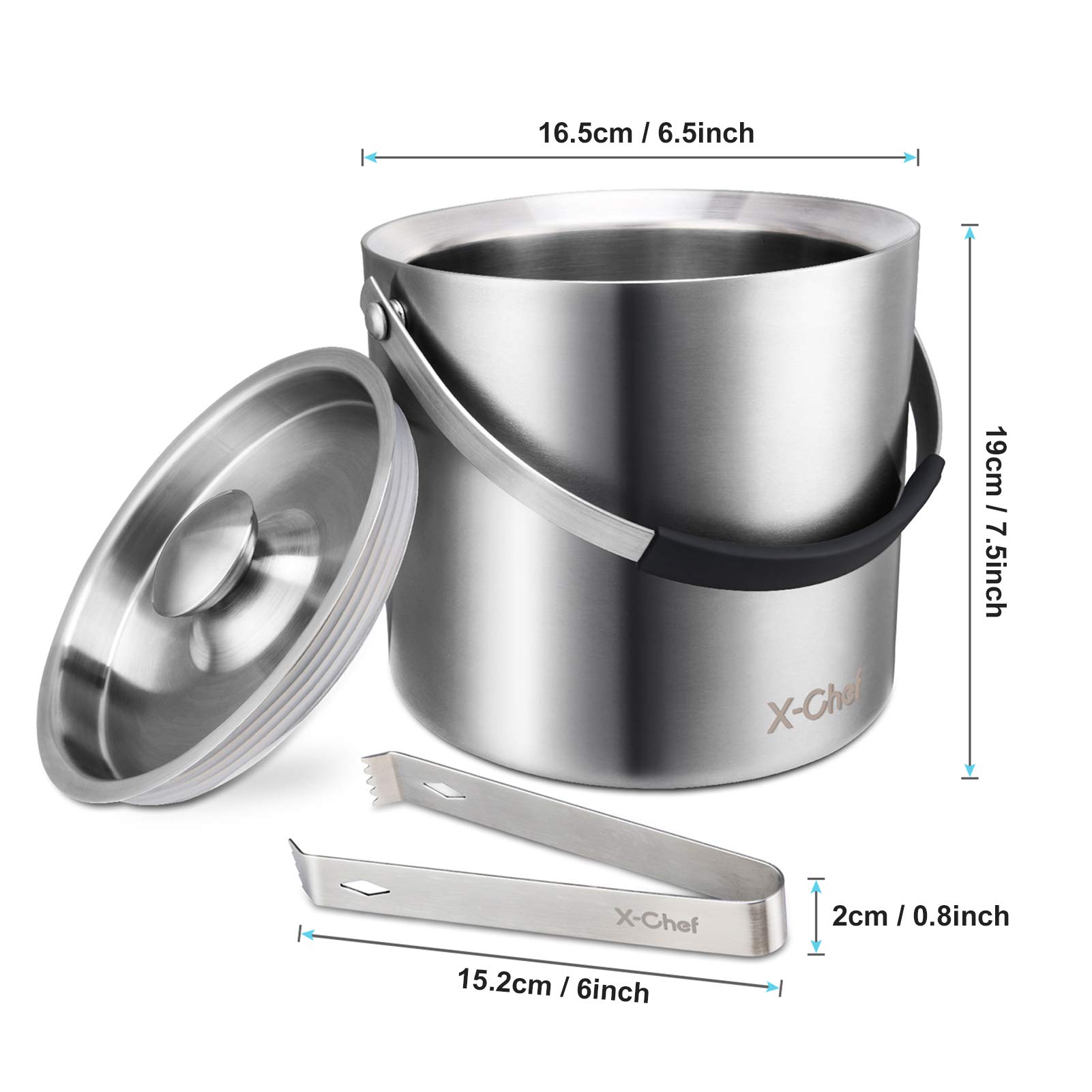 Party steht an? Dieser stylische Edelstahl-Eisbehälter ist dein bester Freund! Mit 2 Litern Fassungsvermögen passt genug Eis für alle Getränke rein - ob Bier, Champagner, Wein oder Cocktails. Aus hochwertigem Edelstahl 304 (lebensmittelecht!), also rostfrei und korrosionsbeständig. Im Set dabei: praktische Eiszange, dichter Deckel und ein Sieb-Einsatz, der das Schmelzwasser vom Eis trennt. So bleibt dein Eis länger kalt! Super einfach zu reinigen - einfach mit warmem Wasser abwischen und trocknen. Perfekt für Gartenpartys, Grillabende, Hochzeiten oder die Hausbar. Sieht nicht nur gut aus, sondern ist auch mega praktisch. Hol dir den Party-Helfer und mach jedes Event noch cooler!