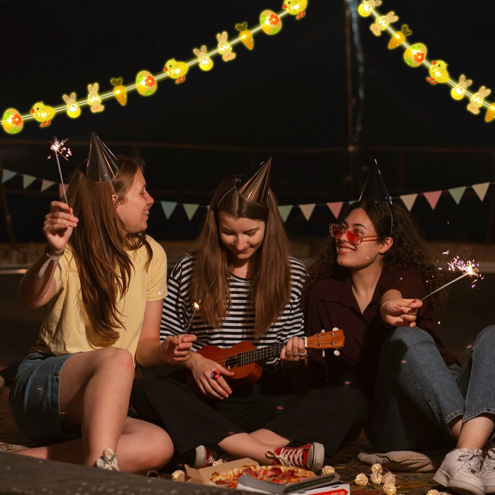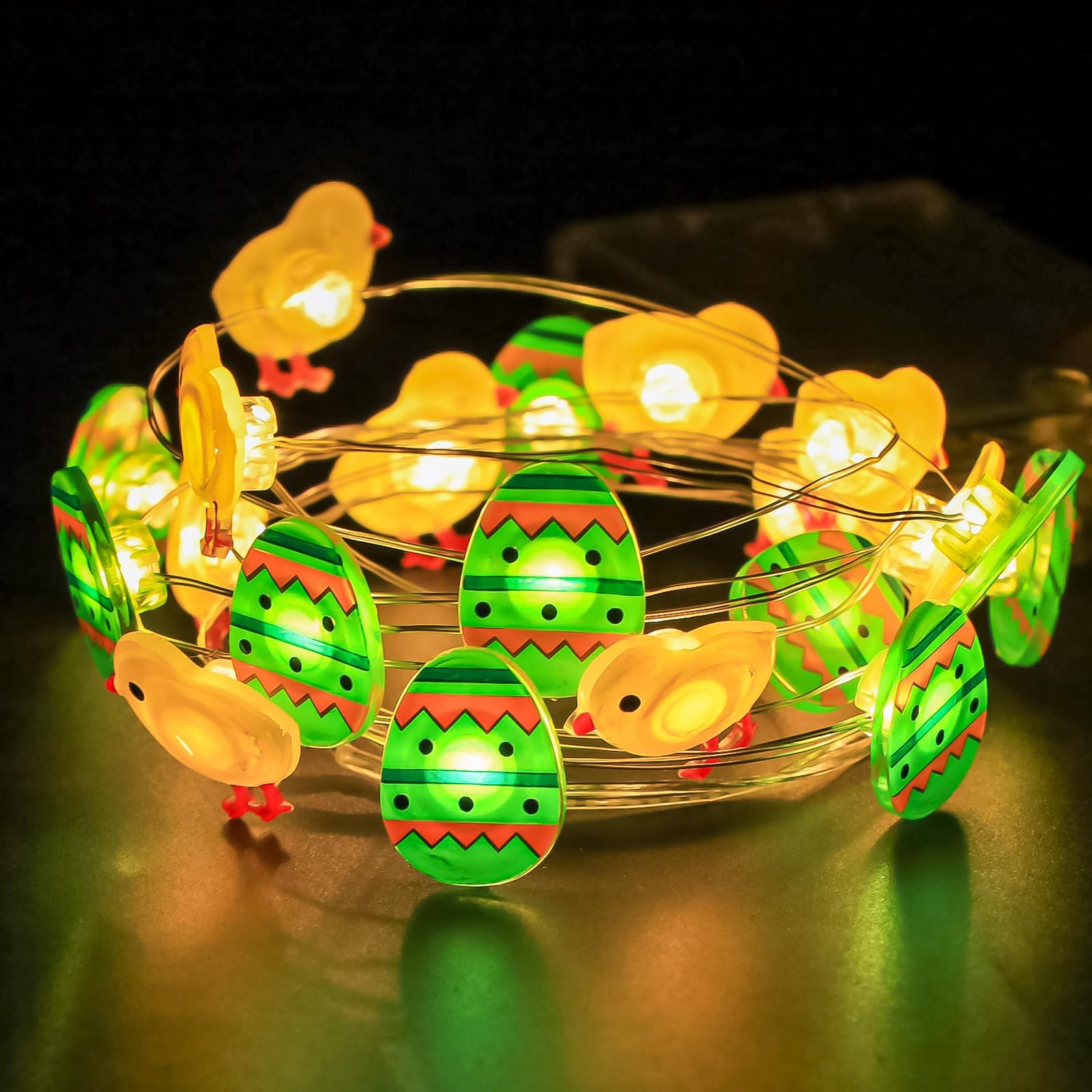 Oh, wie süß! Diese Ostern Lichterkette bringt sofort Frühlingsstimmung in dein Zuhause. Mit 20 warmweißen LEDs auf 2 Metern Länge und den niedlichen 3D-Figuren: Osterhasen, Eier, Küken und Karotten. Das Besondere: Du kannst die Lichterkette in jede Form biegen - perfekt für Osterkränze oder den Osterstrauch. Zwei Modi stehen zur Auswahl: Dauerlicht oder Funkeln für die extra Portion Gemütlichkeit. Batteriebetrieben mit 3 AA-Batterien (nicht im Lieferumfang), also super flexibel überall einsetzbar - ob im Garten, auf der Terrasse oder im Wohnzimmer. Die Lichterkette ist aus hochwertigem Material und kann Jahr für Jahr wieder verwendet werden. Sieht viel teurer aus als sie ist und macht jedes Osterfest zu etwas Besonderem. Einfach einschalten und sich an der gemütlichen Atmosphäre erfreuen. Perfekt auch für Osterpartys oder als Geschenk für Osterfans!