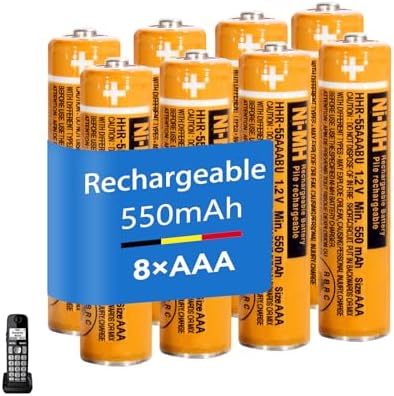 Schluss mit ständigem Batteriewechsel! Diese 8 wiederaufladbaren AAA Akkus sind die perfekte Lösung für dein schnurloses Telefon. Mit 630mAh Kapazität und 1,2V Spannung passen sie perfekt als Ersatz für Panasonic HHR-65AAABU Akkus. Kompatibel mit vielen Panasonic Telefonen wie KX-TG1032, KX-TG823x, KX-TG63xx Serie und mehr. Aber nicht nur das - auch super für Siemens, Gigaset, Philips und andere Marken. Geringe Selbstentladung - halten bis zu 75% der Ladung nach 3 Jahren Lagerung. Ohne Memory-Effekt - du kannst sie jederzeit nachladen. Perfekt für schnurlose Telefone, Solarleuchten, Fernbedienungen, Wireless Mäuse und viele andere Geräte. Im 8er-Set - hast immer Ersatz parat. Umweltfreundlich und kostensparend - keine Einwegbatterien mehr kaufen! Einfach aufladen und wiederverwenden. Mach dein Leben einfacher und umweltbewusster mit diesen praktischen Akkus!