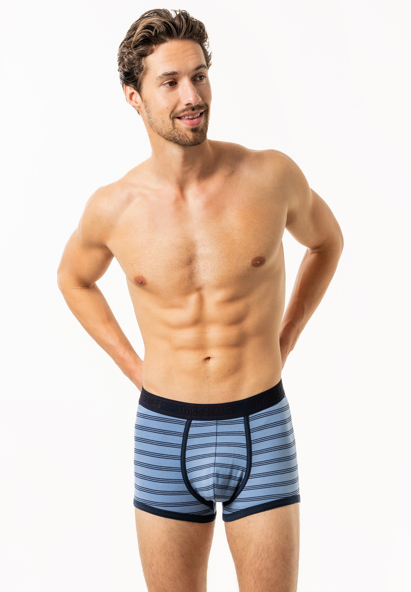 Alltagstauglicher Tragekomfort für Herren! Das 2er-Pack Boxershorts von Living Crafts überzeugt mit weichem, elastischem Jersey-Material aus Baumwolle. Die Retroshorts sitzen angenehm und geben dir volle Bewegungsfreiheit - ideal für den täglichen Gebrauch. Der elastische Bund mit eingewebtem Logo sitzt sicher ohne zu zwicken. Das zeitlose, einfarbige Design passt zu jedem Outfit und sieht trotzdem nicht langweilig aus. Was ich besonders gut finde: Die Boxershorts bleiben auch nach häufigem Waschen formstabil und weich. Kein Einlaufen, kein Verblassen - einfach zuverlässige Qualität. Perfekt für alle, die value schätzen und nicht für jede Unterhose einzieln ins Geschäft rennen möchten. Einfach mal zwei Paar auf Vorrat, dann hast du immer was Frisches im Schrank!