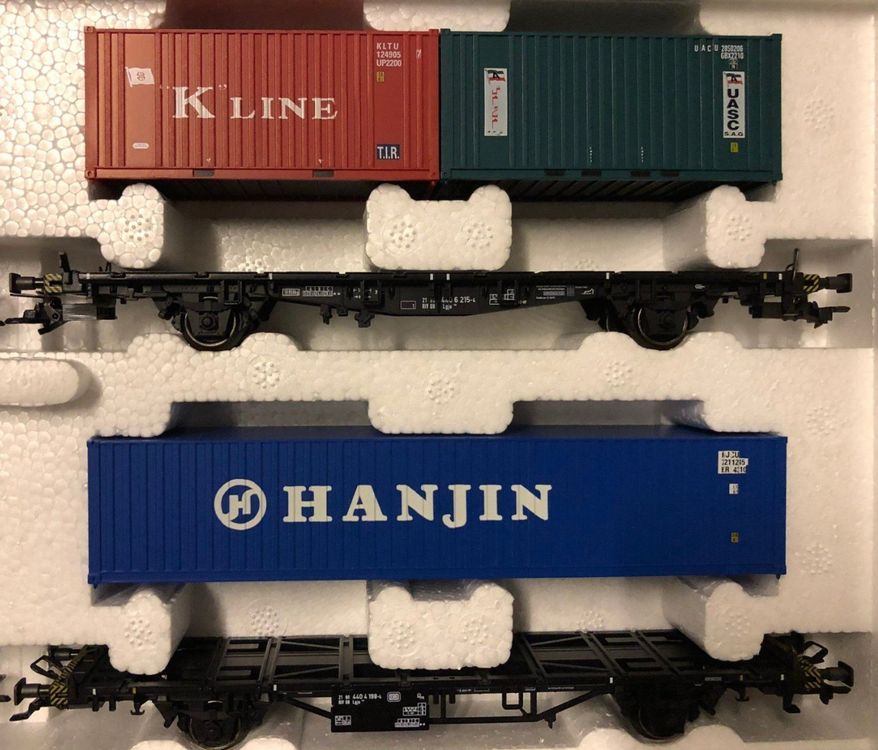 Für alle Modelleisenbahn-Fans, die was für ihren Güterverkehr suchen! Dieses super detaillierte 2er-Set von Märklin zeigt zwei vierachsige Containertragwagen der Bauart Sgns 19 von AAE, wie sie um 2015 unterwegs waren. Die Wagen sind schon beladen mit nem 40 ft Container von Lloyd Triestino und zwei 20 ft Containern von Italia - sieht einfach mega authentisch aus! Perfekt für deine H0-Anlage, ob du jetzt ne moderne Güterzug-Komposition zusammenstellen willst oder einfach nur deinem Bahnhof mehr Leben einhauchen möchtest. Die Qualität ist wie immer bei Märklin absolut top, von der Lackierung bis zu den kleinen Details. Einfach auspacken, auf die Schienen stellen und dich an nem richtig realistischen Güterverkehr erfreuen. Egal ob du Sammler bist oder einfach nur deine Anlage erweitern willst - mit diesen Containertragwagen machst du garantiert nichts falsch!