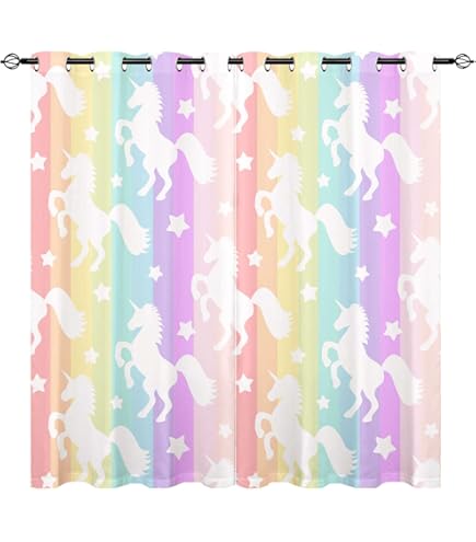 • GIOVIA 3D Einhorn Vorhänge 2er Set - Abdunkelnd 140x160cm Mit Ösen Für Kinderzimmer