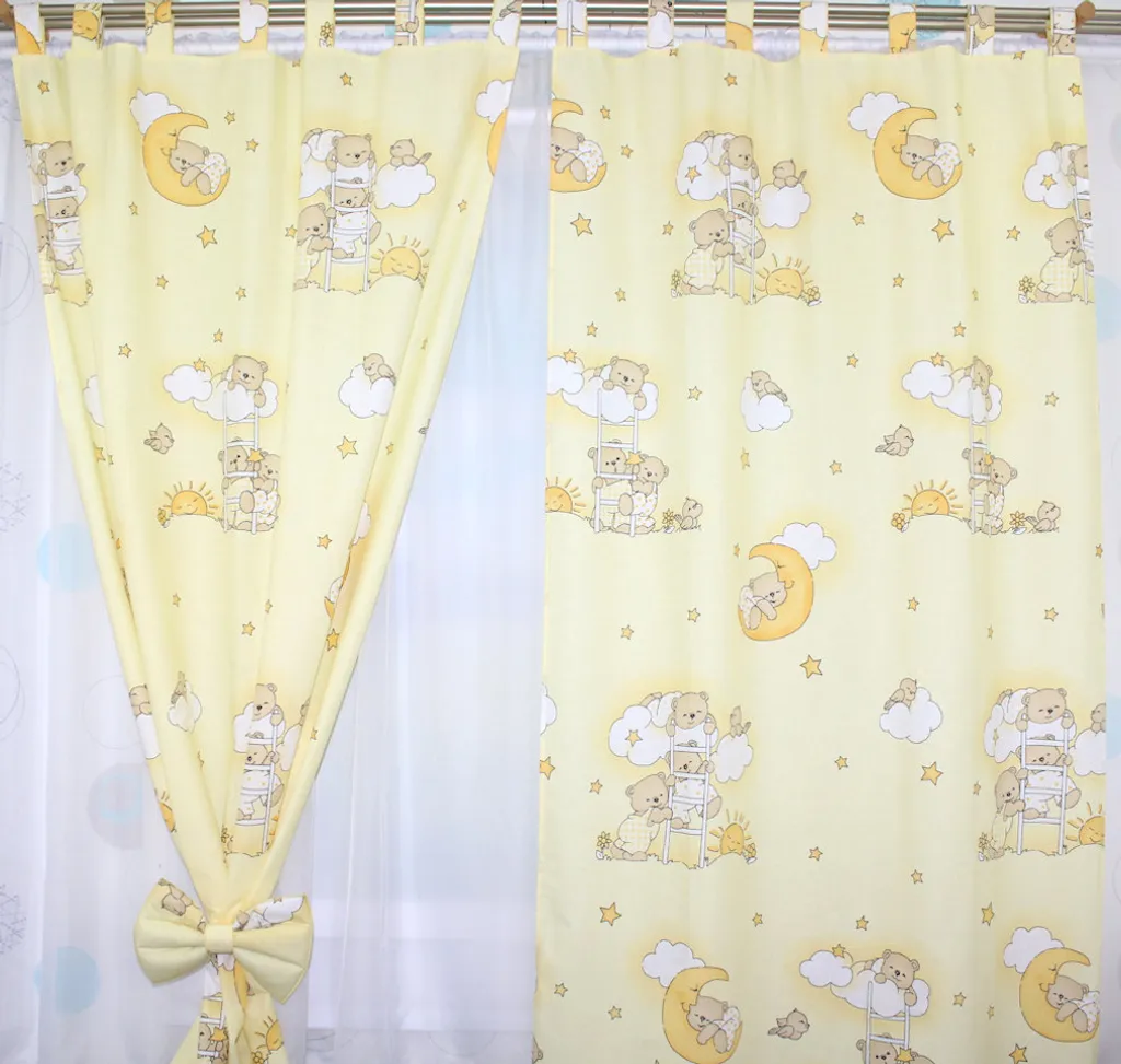 Wie süß sind denn diese Vorhänge mit den kleinen Bärchen, die auf Leitern klettern? Perfekt fürs Kinderzimmer oder Babyzimmer! Das Set enthält zwei Vorhänge in Blau, jeweils 155 cm hoch und 100 cm breit (plus/minus 5 cm). Hergestellt aus 100% Baumwolle, super weich und hautfreundlich. Mit praktischen Schlaufen zum einfachen Aufhängen an der Gardinenstange - kein lästiges Bügeln von Tunnelzug nötig! Die liebevollen Motive machen jeden Kinderraum gemütlich und die Schlaufen sorgen für eine kinderleichte Montage. Einfach anbringen und sich an dem niedlichen Design erfreuen! Die Vorhänge sind maschinenwaschbar, also praktisch für den Alltag mit Kindern. Ein tolles Geschenk zur Geburt oder zur Zimmerrenovierung!