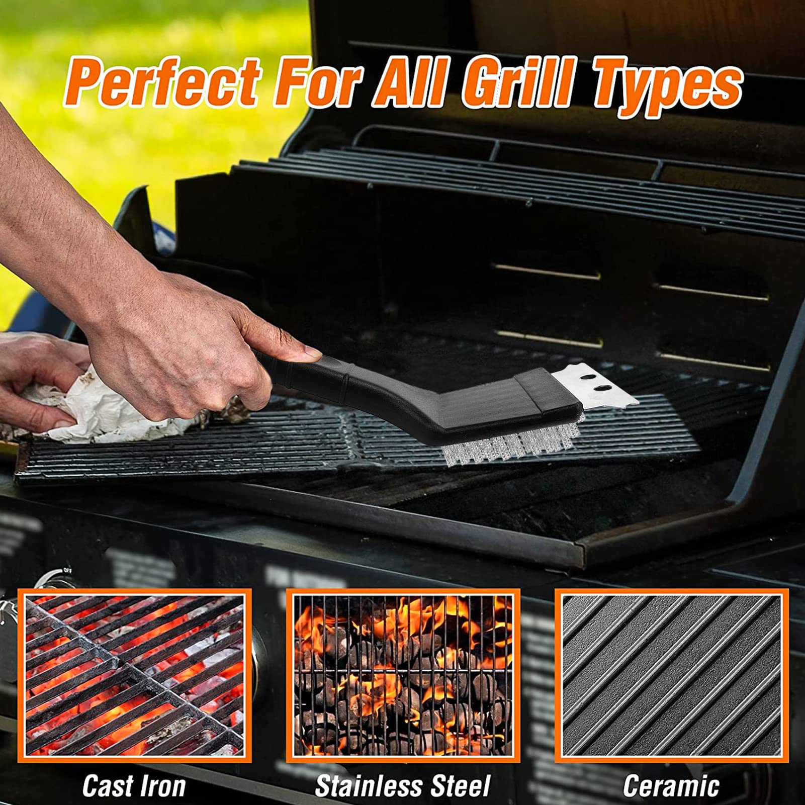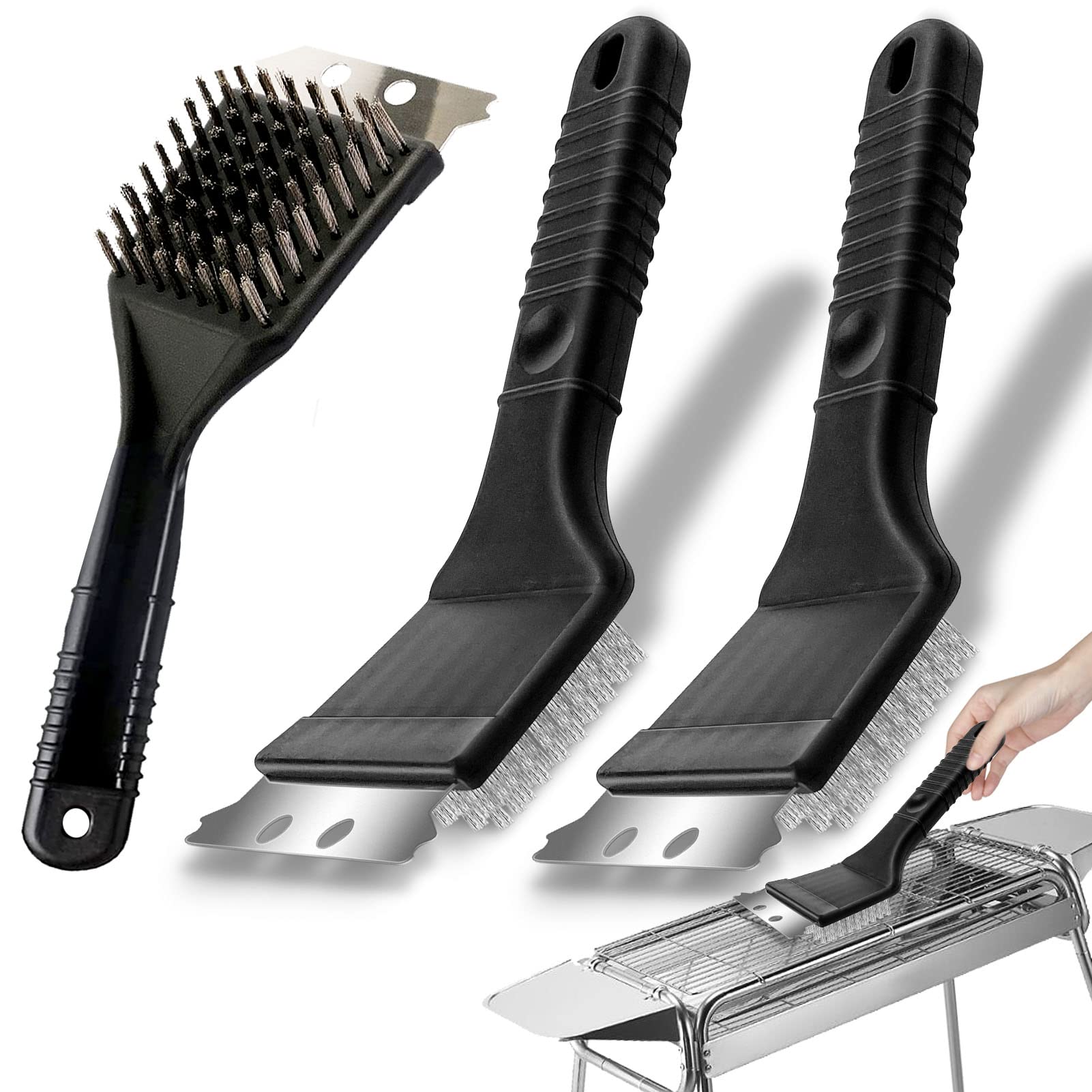 Grill-Saison ohne Putzstress! Dieses 2er Set Grillbürsten von PIWOSGOL macht deinen Grillrost blitzblank. Die 3-in-1 Funktion kombiniert Drahtbürste, Schaber und Reinigungskopf in einem. Aus hochwertigem Edelstahl - rostfrei und hitzebeständig. Die dreieckige Form erreicht auch Ecken und Rundungen. Mit 30,5cm langem, wärmeisoliertem Griff für sicheres Putzen. Perfekt für Gas-, Holzkohle- und Elektrogrills. Mit zwei Bürsten im Set hast du immer eine Reserve parat oder kannst eine für Gäste bereitlegen. Einfache Reinigung, lange Freude am Grillen!