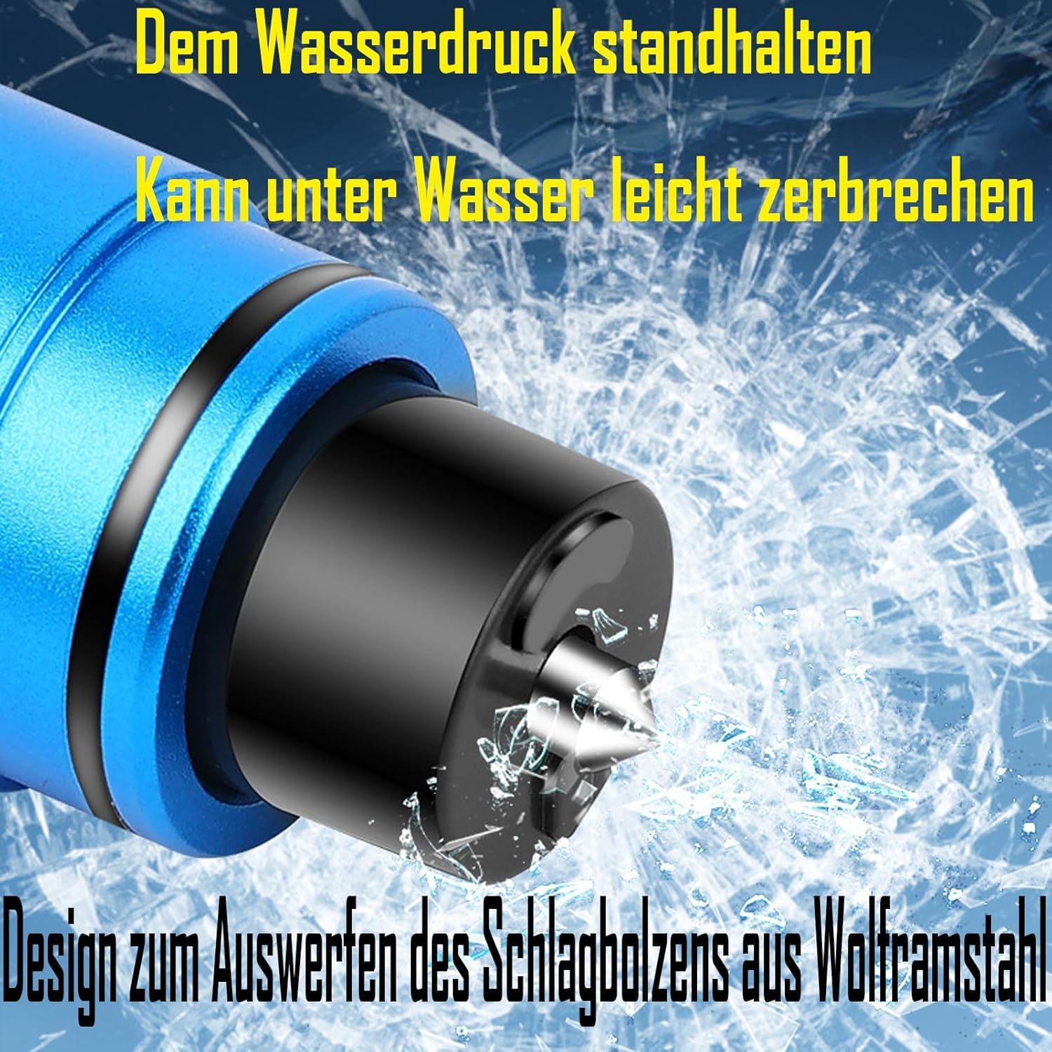 Retter in der Not! Dieses 2er Set Notfallhämmer könnte Leben retten. Mit nur einem Druck zertrümmert die Wolfram-Spitze selbst gehärtete Autoscheiben - auch unter Wasser! Der U-förmige Gurtschneider durchtrennt Sicherheitsgurte sekundenschnell, ohne Verletzungsgefahr. Inklusive Übungsglas für den Ernstfall. Mit Klebehalterung für einfachen Zugriff im Auto. Farbcodierung: Fensterbrecher ohne Lanyard, Gurtschneider mit Lederband. Einfache Bedienung - selbst für Senioren und Kinder. Teste alle 6 Monate die Funktion. Deine letzte Verteidigungslinie bei Überschwemmungen oder Unfällen!