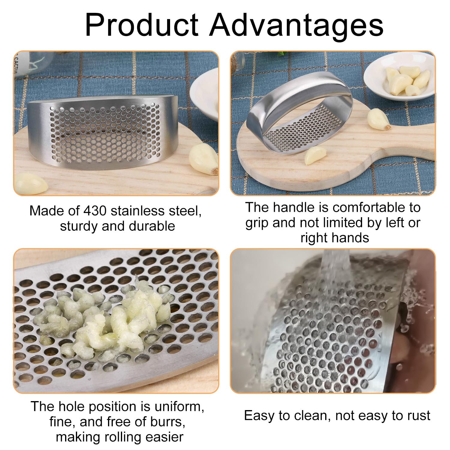 Knoblauch pressen ohne Gestanke und klebrige Hände? Mit dieser Edelstahl-Knoblauchpresse wird's zum Kinderspiel! Das 2er Set ist perfekt für die Küche - einfach den Knoblauch oder Ingwer einlegen, zudrücken und schon hast du feinstes Püree. Die rutschfesten Holzgriffe liegen gut in der Hand und der Edelstahl-Körper ist nicht nur robust, sondern auch spülmaschinengeeignet. Mit 19,5cm Länge ist die Presse handlich und platzsparend. Das effiziente Lochmuster presst jede Menge Knoblauch durch, ohne dass viel zurückbleibt. Ob für Knoblauchbrot, Pasta-Saucen oder asiatische Gerichte - mit dieser Presse hast du immer frischen Knoblauch parat, ohne dass deine Hände danach riechen. Ein echter Küchenhelfer, der sich schnell bezahlt macht!