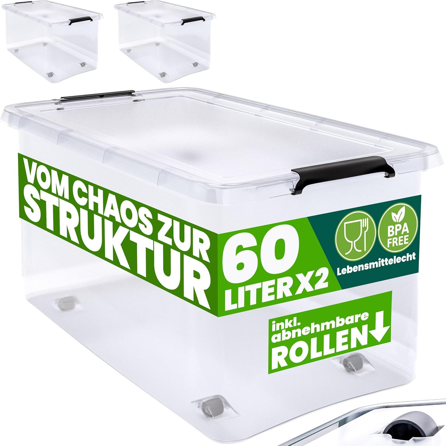 Schluss mit dem Chaos in Keller, Garage oder Kinderzimmer! Die SUSTANIA Aufbewahrungsboxen im praktischen 2er-Set bringen Ordnung in dein Leben. Mit 40 Liter Fassungsvermögen und den Maßen 58x37x31cm finden Spielsachen, Werkzeug, Kleidung oder Büroklamotten Platz. Das coole Feature: Die Boxen sind nicht nur stapelbar, sondern haben auch integrierte Rollen! So schiebst du selbst volle Kisten mühelos durch die Wohnung. Der transparente Kunststoff verrät sofort, was drin ist - kein langes Suchen mehr. Die stabilen Clip-Verschlüsse halten den Inhalt sicher verschlossen und staubfrei. Die ergonomischen Griffe machen das Tragen besonders angenehm. Perfekt für alle, die ihr Zuhause endlich organisieren wollen. Ob im Homeoffice, in der Werkstatt oder im Kinderzimmer - diese Allround-Boxen sind deine besten Helfer gegen das Durcheinander!