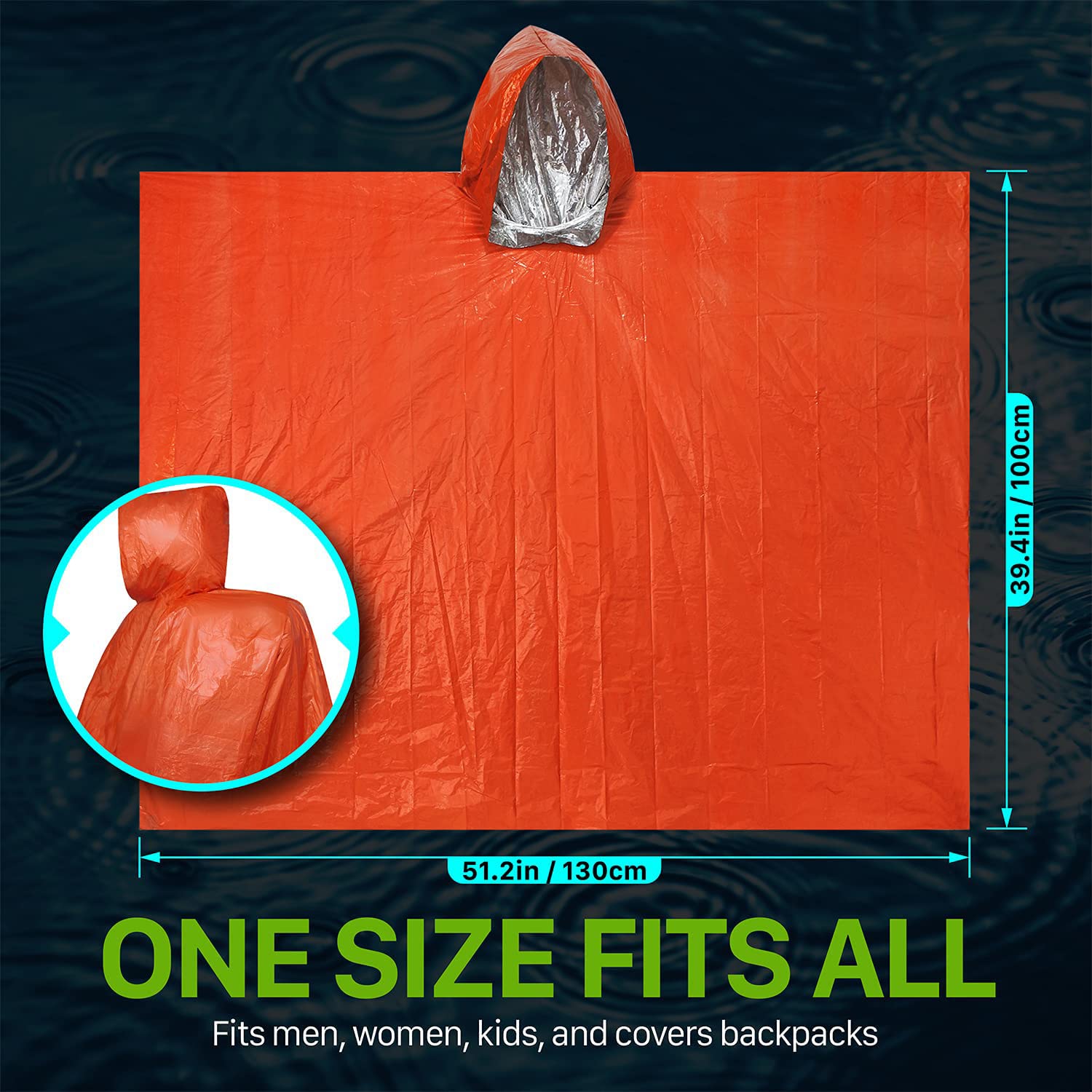 Für alle Outdoor-Fans und Vorsorge-Begeisterte! Dieses 2er-Set Notfall-Ponchos könnte im Ernstfall lebenswichtig sein. Jeder Poncho wiegt nur 80 Gramm und passt zusammengerollt in jeden Rucksack oder Handschuhfach. Die reflektierende Innenseite speichert bis zu 90% deiner Körperwärme - super bei plötzlichem Kälteeinbruch. Aus robustem PE-Material, absolut wasser- und winddicht. Die knallorange Außenseite macht dich bei Rettungseinsätzen gut sichtbar. Im Lieferumfang sind praktische Packsäcke, Karabiner und eine laute Signalpfeife (120 dB) enthalten. Groß genug, dass du sogar einen Rucksack darunter tragen kannst. Ob beim Wandern, Camping, im Auto oder als Teil deiner Erste-Hilfe-Ausrüstung - diese Ponchos sind echte Allrounder. Auch als Notzelt oder Windschutz verwendbar. Sicherheit, die kaum Platz wegnimmt!