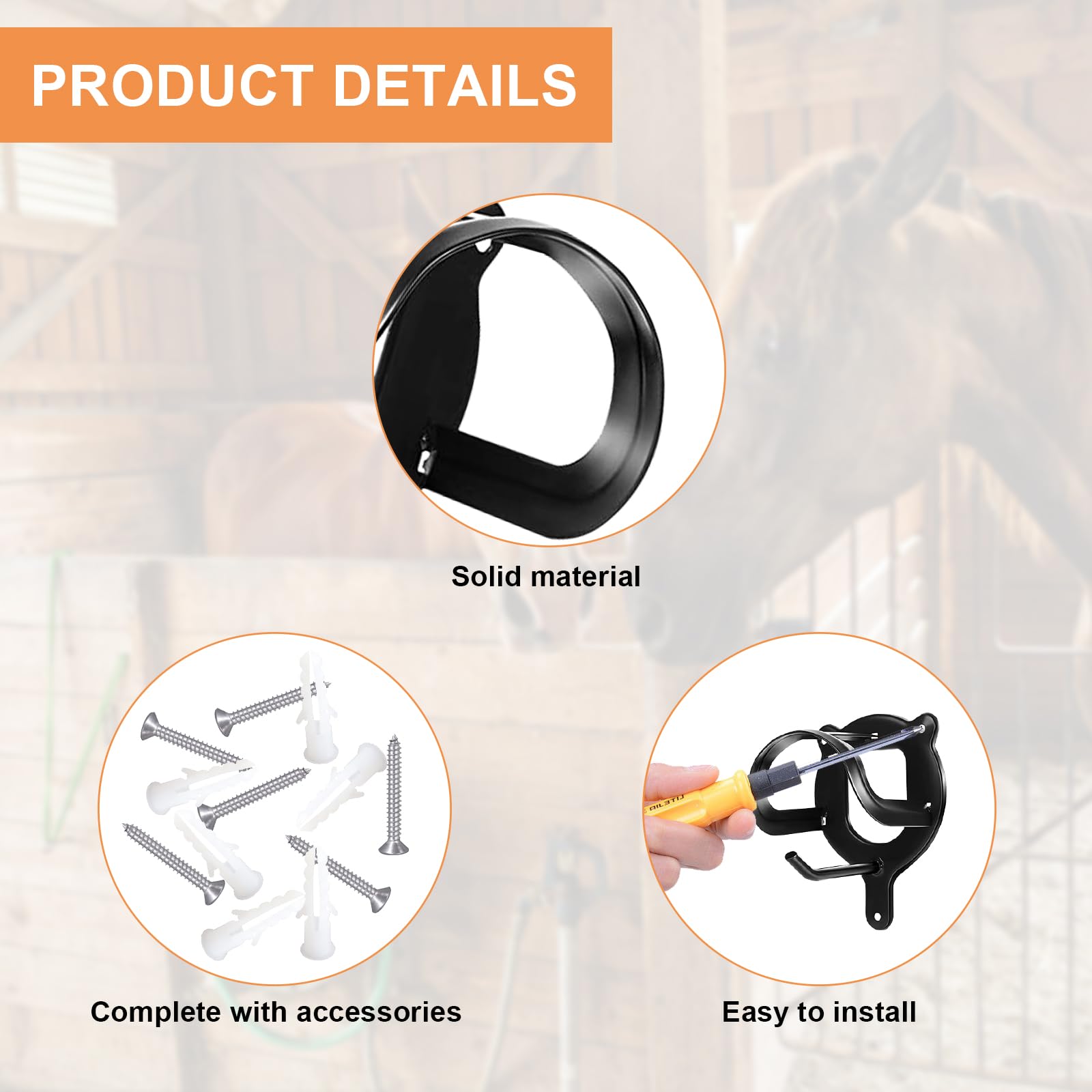 Perfekt für alle Reiter und Pferdebesitzer! Dieses 2er-Set Trensenhalter bringt endlich Ordnung in deine Sattelkammer oder Pferdebox. Einfach an der Wand montiert und schon hast du deine Trensen und Halfter griffbereit und platzsparend verstaut. Die Halter sind super stabil mit einer schwarzen Pulverbeschichtung - die halten wirklich was aus und rosten nicht. Im Lieferumfang sind gleich 6 Schrauben und 6 Verlängerungsrohre dabei, sodass du sofort loslegen kannst. Kein langes Suchen nach passendem Werkzeug, die Montage ist echt simpel. Ob in der Reithalle, im Anhänger oder zu Hause - diese praktischen Halter machen überall eine gute Figur. Und falls du noch ein Geschenk für einen Pferdefan suchst: Damit liegst du absolut richtig! Die Halterungen sind vielseitig einsetzbar und helfen dabei, das ganze Pferdezubehör schön ordentlich zu verwahren. So hast du immer den Überblick und deine Trense ist vor Staub und Beschädigungen geschützt. Einfach praktisch für jeden, der sein Pferd liebt und Wert auf Ordnung legt!