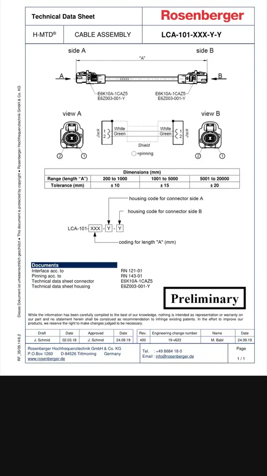 • Rosenberger FAKRA Antennenkabel H-MTD - 2m Ethernet Kabel Für Automotive