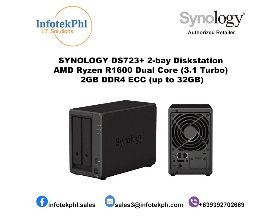 Deine eigene Cloud zu Hause! Die Synology DS723+ ist ein super NAS für alle, die ihre Daten sicher speichern wollen. Mit AMD Ryzen R1600 Prozessor, 2GB RAM und hier im Bundle mit 2x 8TB Festplatten (16TB gesamt). Perfekt für Backups, Multimedia oder als Fileserver. Einfach einzurichten mit DSM Oberfläche - kein IT-Wissen nötig. Mit QuickConnect von überall erreichbar. Kann später auf 7 Bays erweitert werden. Ideal für Home-Office, Fotografen oder Familien - einfach genial!