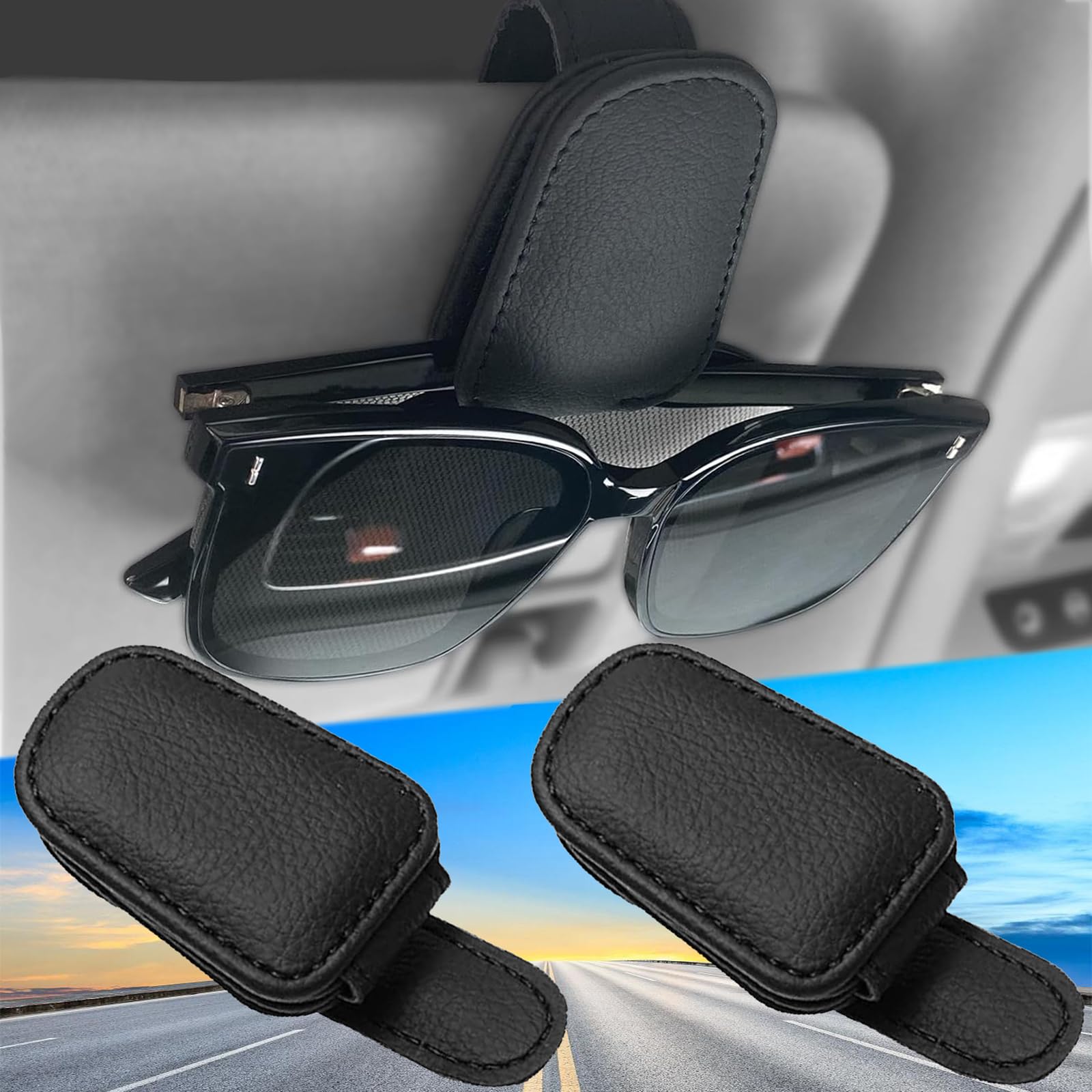 • 2x Auto Brillenhalter Magnetisch - Leder Halterung Für Sonnenbrillen & Karten