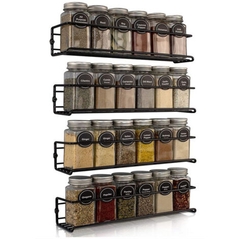 Schluss mit dem Gewürz-Chaos in der Küche! Diese beiden Metall-Regale in schickem Schwarz bringen endlich Ordnung in deine Gewürzsammlung. Jedes Regal ist 29x6x6,5 cm groß und bietet Platz für bis zu 12 Gewürzgläser - und das ganz ohne dass deine Arbeitsplatte vollgestellt ist.