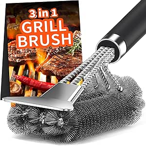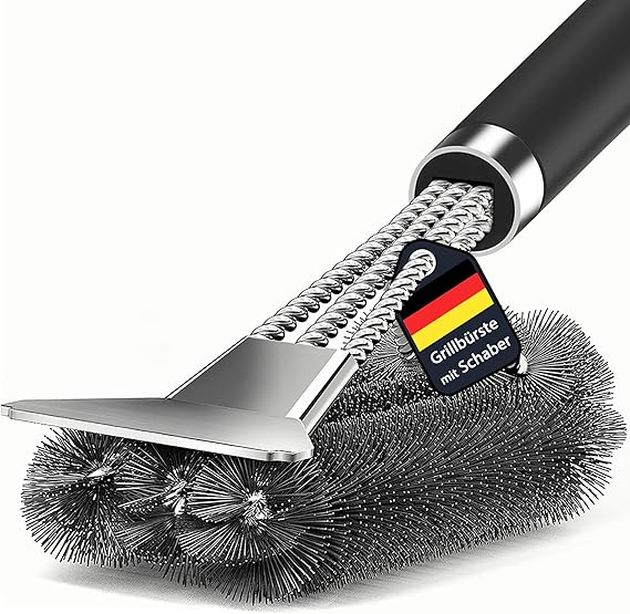 Grill-Reinigung mal einfach! Dieses 2er-Set macht deinen Grill im Handumdrehen sauber. Mit extra-langen Edelstahl-Borsten, die auch eingebrannte Reste locker entfernen. Integrierter Schaber auf der Rückseite für besonders hartnäckige Stellen. Der rutschfeste Griff bleibt auch bei Hitze kühl und liegt super in der Hand. Mit Aufhängebohrung für platzsparende Lagerung. Perfekt für Gasgrill, Holzkohlegrill, Kugelgrill - eigentlich für alles, was gegrillt wird! Nach dem Grillen schnell sauber machen und fertig.