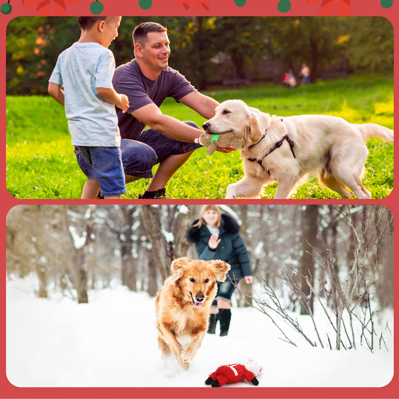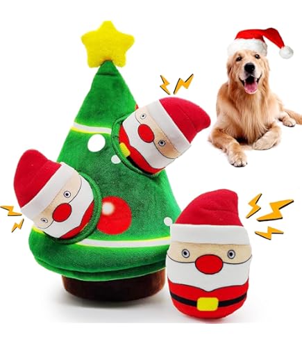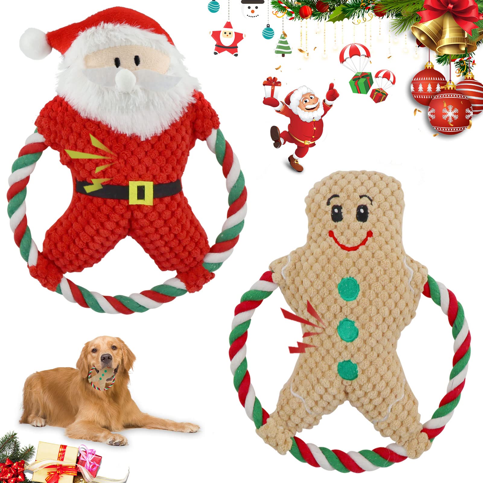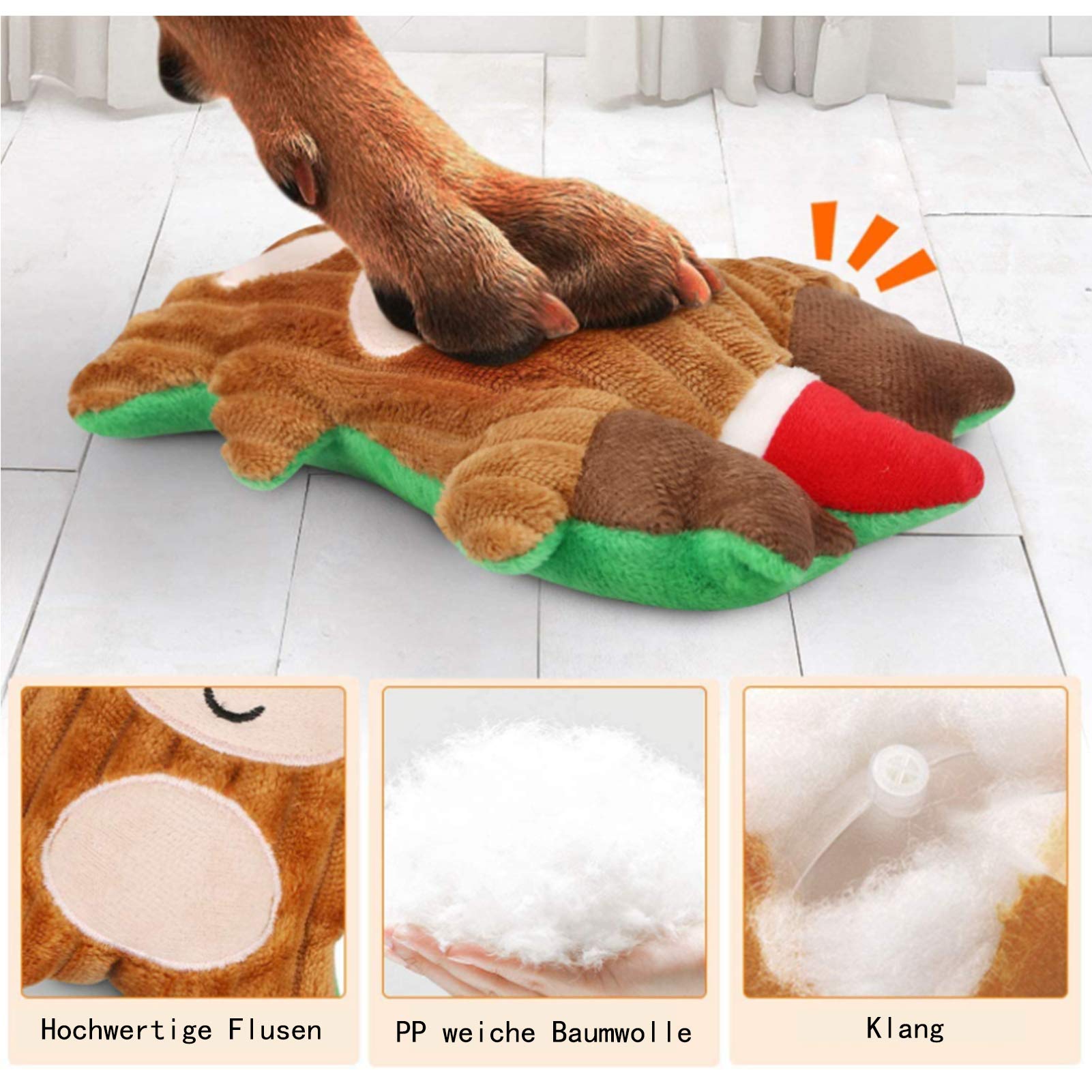 Dein Hund wird verrückt nach diesen weihnachtlichen Spielzeugen sein! Dieses Set mit 2 verschiedenen Weihnachts-Hundespielzeugen bringt Festtagsstimmung ins Hundeleben. Jedes Spielzeug hat nicht nur einen Quietscher, sondern auch eine eingebaute Pfeife, die zusätzliche Geräusche macht - das weckt den Jagdinstinkt deines Vierbeiners garantiert! Hergestellt aus weicher, ungiftiger Baumwolle mit dickem Kordelkern sind sie ideal zum Kauen und helfen sogar bei der Zahnreinigung. Die weihnachtlichen Motive in leuchtenden Farben sehen nicht nur niedlich aus, sondern machen deinen Hund zum Weihnachtsstar. Besonders praktisch: Der wasserdichte Stoff verhindert, dass Speichel in die Füllung gelangt - langlebiger Spaß also! Ob für Solo-Spiel oder interaktive Spiele mit dir - diese Spielzeuge beschäftigen deinen Hund stundenlang und reduzieren destruktives Verhalten. Einfach in der Waschmaschine reinigen und schon ist es wieder wie neu. Das perfekte Weihnachtsgeschenk für deinen treuen Begleiter - weil auch Hunde ihr eigenes Geschenk verdient haben!