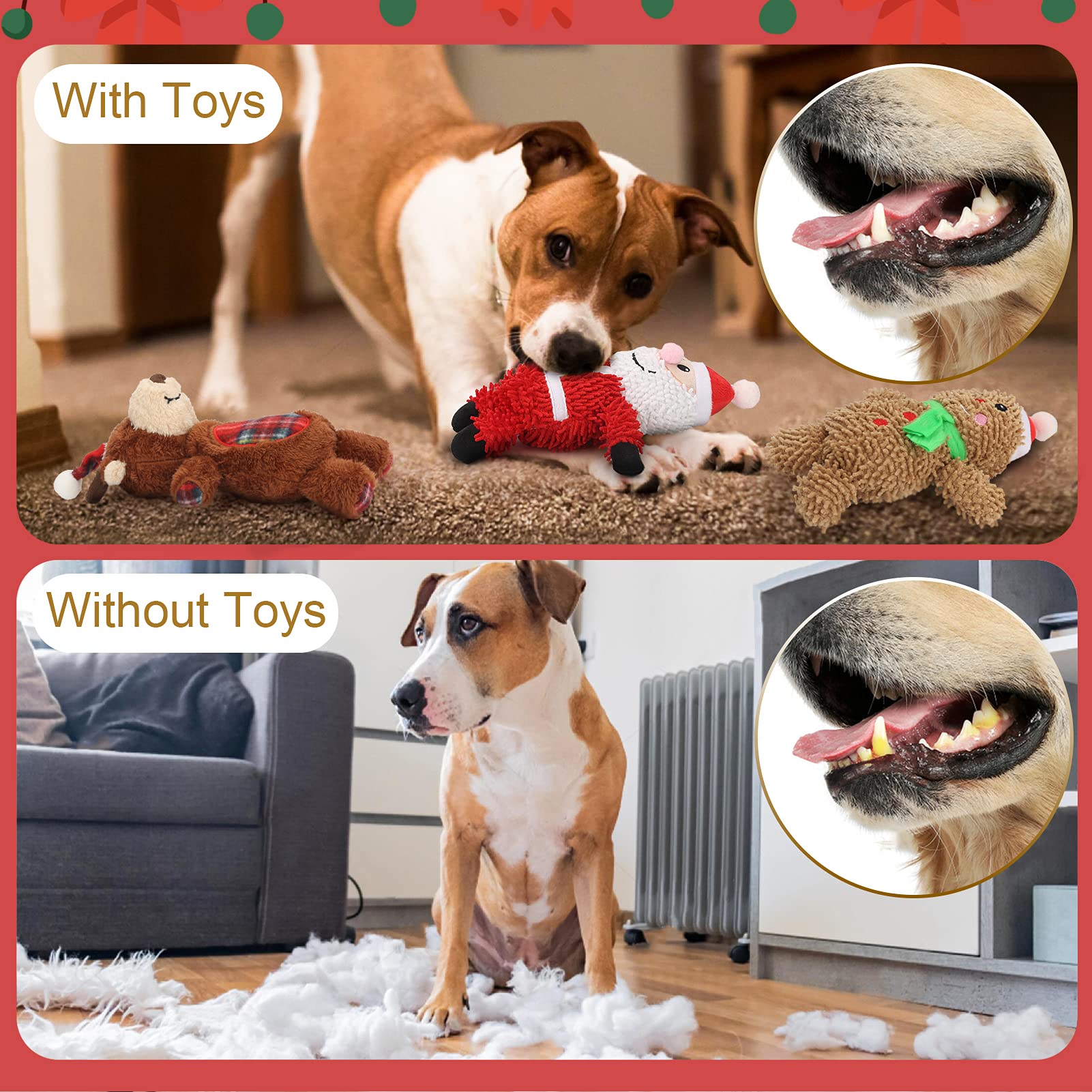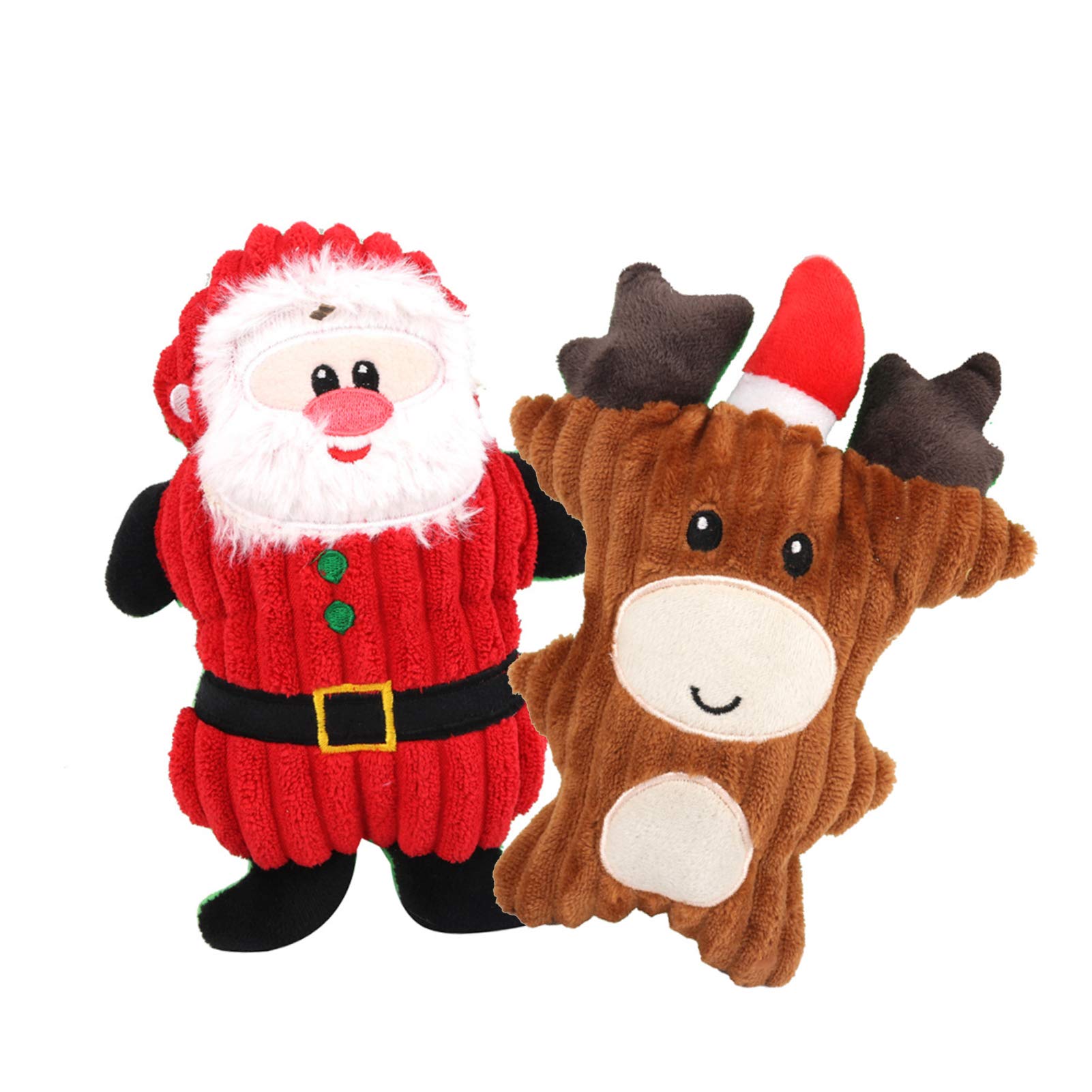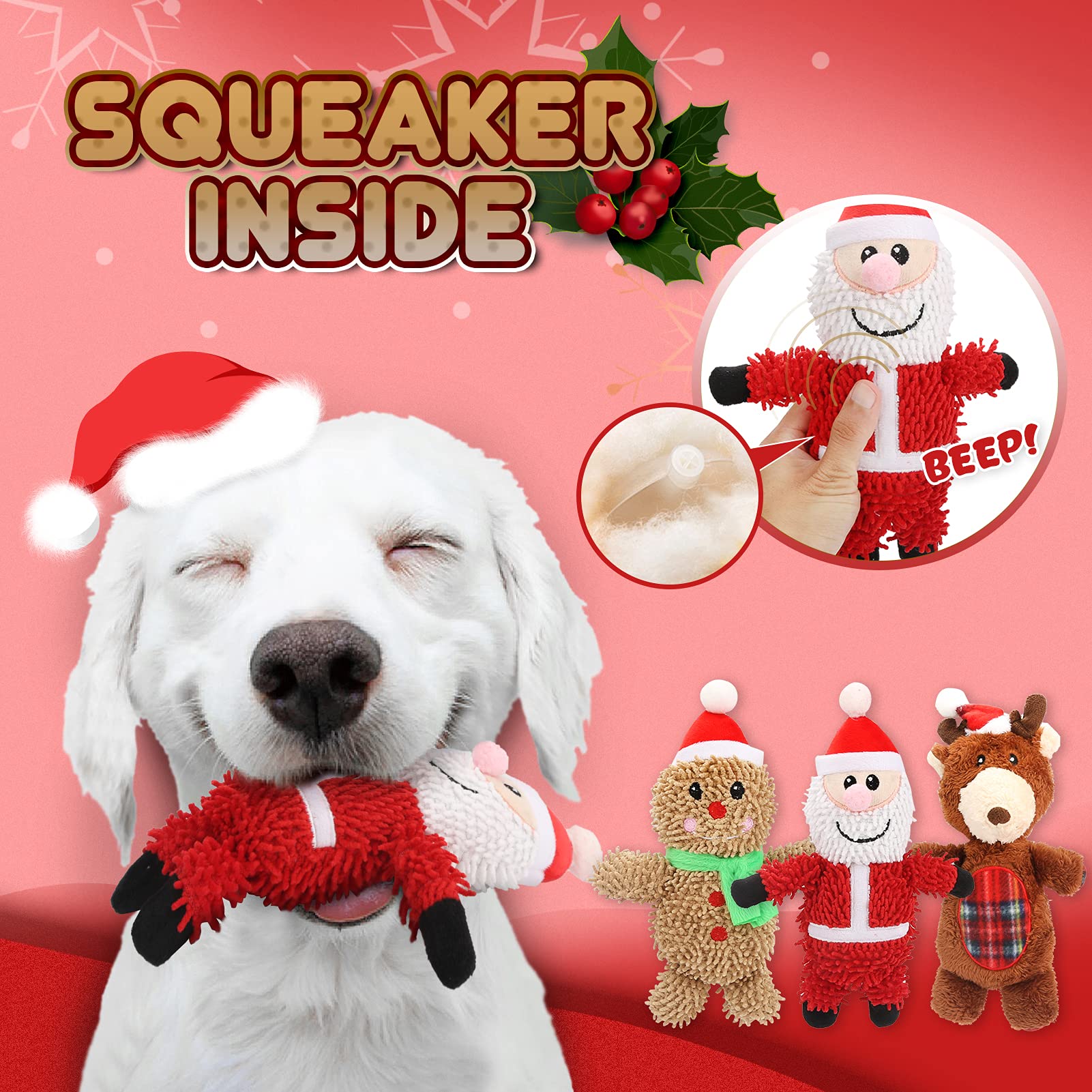 Dein Hund wird verrückt nach diesen weihnachtlichen Spielzeugen sein! Dieses Set mit 2 verschiedenen Weihnachts-Hundespielzeugen bringt Festtagsstimmung ins Hundeleben. Jedes Spielzeug hat nicht nur einen Quietscher, sondern auch eine eingebaute Pfeife, die zusätzliche Geräusche macht - das weckt den Jagdinstinkt deines Vierbeiners garantiert! Hergestellt aus weicher, ungiftiger Baumwolle mit dickem Kordelkern sind sie ideal zum Kauen und helfen sogar bei der Zahnreinigung. Die weihnachtlichen Motive in leuchtenden Farben sehen nicht nur niedlich aus, sondern machen deinen Hund zum Weihnachtsstar. Besonders praktisch: Der wasserdichte Stoff verhindert, dass Speichel in die Füllung gelangt - langlebiger Spaß also! Ob für Solo-Spiel oder interaktive Spiele mit dir - diese Spielzeuge beschäftigen deinen Hund stundenlang und reduzieren destruktives Verhalten. Einfach in der Waschmaschine reinigen und schon ist es wieder wie neu. Das perfekte Weihnachtsgeschenk für deinen treuen Begleiter - weil auch Hunde ihr eigenes Geschenk verdient haben!