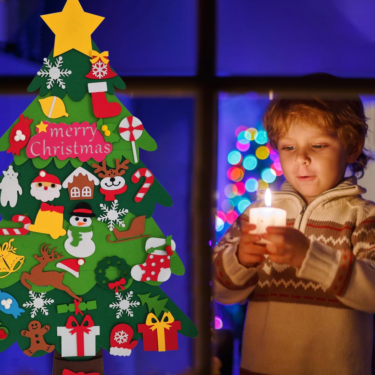 Oh, was für eine süße Weihnachtsidee! Dieser 3,28ft (1 Meter) große Filz-Weihnachtsbaum bringt den Zauber der Weihnachtszeit direkt an deine Wand oder Tür. Mit 45 abnehmbaren Ornamenten - Sterne, Schneemänner, Weihnachtsmänner und mehr - alles mit praktischen Klettverschlüssen. Kinder können den Baum immer wieder neu schmücken und ihrer Kreativität freien Lauf lassen. Super für die Entwicklung der Feinmotorik und Farbwahrnehmung. Aus dickem, ungiftigem Filz - sicher und langlebig. Einfach aufhängen und Jahr für Jahr verwenden. Perfekt für's Kinderzimmer und eine tolle Aktivität für die ganze Familie in der Vorweihnachtszeit - weihnachtlicher geht's kaum!