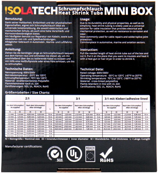 Perfekt für alle Elektro-Arbeiten! Dieser netproshop Schrumpfschlauch ist ein Allrounder! 3,2mm Durchmesser vor dem Schrumpfen, 1,6mm danach - 2:1 Schrumpfverhältnis! 9 Meter auf der Spule - immer griffbereit! Aus Polyolefin, flammwidrig und RoHS-konform! Für Kabelisolation, Bündelung, Korrosionsschutz - einfach für alles! Temperaturbeständig von -55°C bis +125°C! Einfach über das Kabel schieben, erhitzen - fertig! Auch bedruckbar für Markierungen! Für alle, die value auf professionelle Kabelarbeit legen!