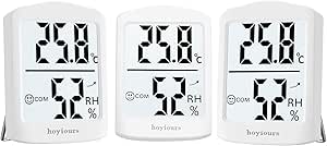 Immer das perfekte Raumklima! Dieses digitale Thermometer-Hygrometer von hoyiours zeigt dir Temperatur und Luftfeuchtigkeit immer genau an. Der große 3.4 Zoll LCD-Bildschirm ist super gut ablesbar, auch aus der Entfernung. Mit praktischer Hintergrundbeleuchtung - entweder für 10 Sekunden oder die ganze Nacht einstellbar. Das coole Feature: Ein Komfort-Indikator zeigt dir an, ob die Luftfeuchtigkeit zu trocken, angenehm oder zu feucht ist. Der Messbereich geht von -50°C bis 70°C und 10% bis 99% Luftfeuchtigkeit - also für jeden Raum geeignet. Der Sensor aktualisiert alle 3 Sekunden und ist super präzise. Es speichert sogar Maximal- und Minimalwerte, sodass du Trends verfolgen kannst. Betrieben mit 2 AAA-Batterien (nicht im Lieferumfang) mit langer Laufzeit. Perfekt für Zuhause, Büro, Gewächshaus oder Keller. Hol dir dieses praktische Gerät und schaff dir ein optimales Wohnklima!