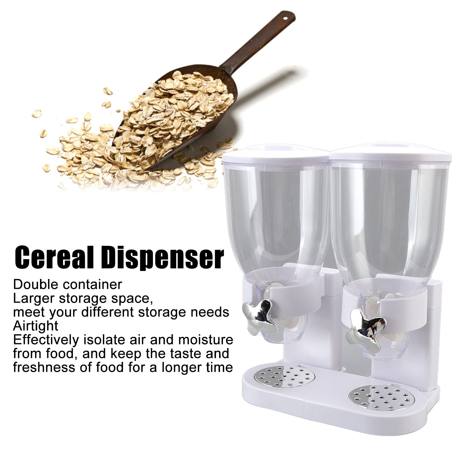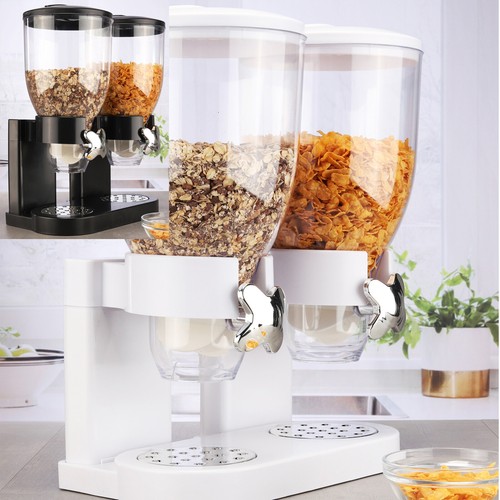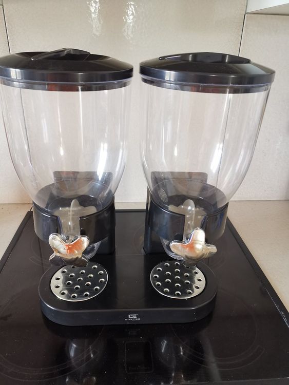 Schluss mit chaotischen Vorratsschränken! Dieser coole Doppel-Spender hält dein Müsli, Cerealien und andere Trockenlebensmittel perfekt organisiert. Jeder Behälter fasst 3,5 Liter - insgesamt also stolze 7 Liter Stauraum. Das Besondere: Der luftdichte Drehverschluss hält deine Lebensmittel bis zu 45 Tage frisch, ohne dass Aroma oder Knusprigkeit verloren gehen. Einfach drehen und schon portionierst du genau die richtige Menge. Aus hochwertigem ABS-Material, super stabil und leicht zu reinigen. Perfekt für die Arbeitsplatte - alles immer griffbereit und schön ordentlich. Kein Kleckern mehr, keine offenen Packungen, die labberig werden. Sieht nicht nur gut aus, sondern macht deine Küche auch viel praktischer. Ein Must-have für alle, die Wert auf Ordnung und Frische legen!