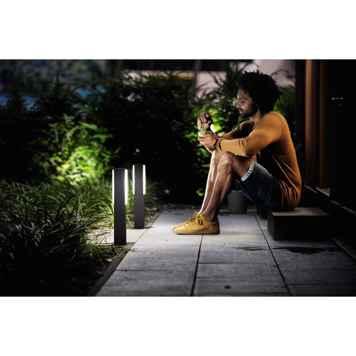 Mehr Licht für weniger Strom - die Philips Bustan beweist's! Mit nur 3,8W verbraucht sie 50% weniger Energie als normale LEDs, dabei strahlt sie mit 2700K diese gemütliche warm-weiße Farbe aus. Die IP44-Zertifizierung bedeutet: Dieser Outdoor-Klassiker hält echt was aus - ob Regen, Schnee oder Sonne. Der integrierte Bewegungssensor ist der absolute Clou: Im Ruhemodus leuchtet sie dezent mit 55 Lumen, sobald sich jemand nähert, springt sie auf volle 255 Lumen. Aus robustem Aluminiumdruckguss und hochwertigen Kunststoffen gebaut, hält sie bis zu 50.000 Stunden. Perfekte Beleuchtung für Hauseingang, Terrasse oder Gartenweg!