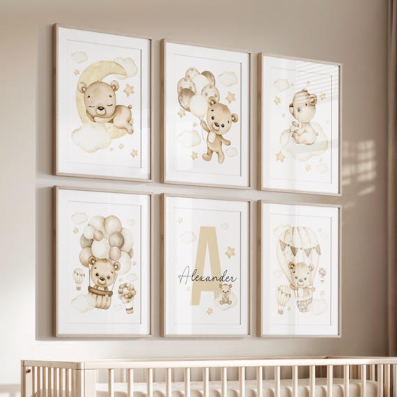 So süß! Diese 3 personalisierten Poster fürs Babyzimmer sind einfach bezaubernd. Mit Teddybär, Wolke und Heißluftballon in dezentem Beige. Maße 30x40cm - perfekt für jede Wand. Einfach Namen personalisieren und aufhängen. Ohne Rahmen - passt in jeden Standardrahmen. Wunderbare Geschenkidee zur Geburt oder Taufe. Schafft eine gemütliche Atmosphäre für dein Baby. Einfach aufhängen und staunen wie schön das Zimmer wird!