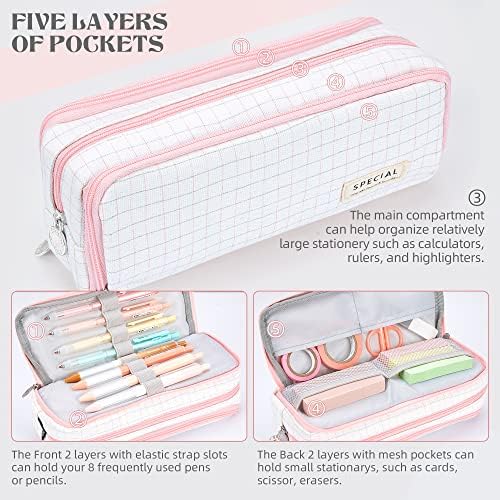 Riesen Platz für alle deine Stifte! Dieses Federmäppchen von buvyuotu hat drei Fächer und kann bis zu 80 Stifte, Taschenrechner, Lineale und mehr aufnehmen. Aus robustem Segeltuch in grün (auch in anderen Farben erhältlich) ist es super langlebig und pflegeleicht. Die 14 elastischen Bänder in einem Fach halten deine häufig genutzten Stifte perfekt organisiert, während die anderen Fächer Platz für größeres Zubehör bieten. Der hochwertige Reißverschluss klemmt nicht und lässt sich smooth öffnen und schließen. Mit 22x13x7,5cm Maßen passt alles rein, was Schüler, Studenten oder Büroangestellte so brauchen. Auch super als Basteltasche oder Kosmetiktasche nutzbar. Mit 30-tägiger Rückgabegarantie!