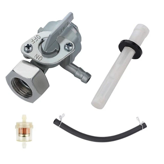 Alles für deine Gartengeräte in einem Set! Dieses Benzinhahn-Set mit 3 Filtern, 3 Absperrventilen und 6 Klemmen ist die perfekte Lösung für Rasenmäher, Freischneider und andere benzinbetriebene Gartengeräte.\n\nTechnische Daten:\n• Gewinde: G1/4 - Standard für Gartengeräte\n• Material: Hochwertiger Kunststoff\n• Gewicht: 62g - leicht und handlich\n• Kompatibilität: Für Vergaser-Systeme\n\nIm Lieferumfang:\n• 3x Kraftstofffilter\n• 3x Absperrventile\n• 6x Schlauchklemmen\n• Alles in einem praktischen Set\n\nEinsatzbereiche:\n• Rasenmäher und Aufsitzmäher\n• Freischneider und Motorsensen\n• Kleinmotoren mit Vergaser\n• Gartenarbeit-Geräte\n• Landwirtschaftliche Kleingeräte\n\nVorteile des Sets:\n• Schneller Einbau - keine Spezialwerkzeuge\n• Einfacher Ersatz für beschädigte Teile\n• Robuste Kunststoff-Qualität\n• Wetterbeständig und langlebig\n• Verbessert die Geräteleistung\n\nWarum regelmäßiger Wechsel wichtig ist:\nAlte oder verstopfte Benzinhähne und Filter können zu Leistungsverlust und Motorschäden führen. Mit diesem Set hast du immer Ersatzteile griffbereit!\n\nFür alle Gartenbesitzer und Hobby-Mechaniker - halte deine Gartengeräte in Top-Form mit diesem praktischen Komplett-Set!