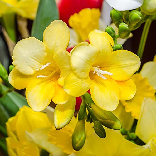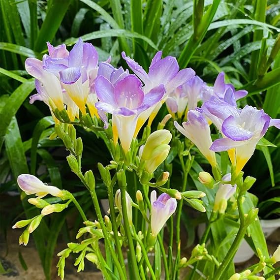 Wunderschöne Freesien-Zwiebeln für deinen Garten! Drei hochwertige Zwiebeln die zu bezaubernden Blumen heranwachsen. Mehrjährig und winterhart - kommen also jedes Jahr wieder! Perfekt für Blumenbeete, botanische Gärten oder den Balkon. Auch als Schnittblumen für die Vase super geeignet! Wichtig fürs Pflanzen: Lockere, fruchtbare Erde verwenden - am besten mit Humus, Gartenerde und Sand mischen. Alle 15 Tage etwas Dünger gießen, aber verdünnt! Regelmäßig gießen damit der Boden feucht bleibt - etwa alle sieben Tage. Freesien lieben Sonne - also an einen hellen Standort pflanzen! Nach dem Wachstum ab und zu die Blätter besprühen für mehr Luftfeuchtigkeit. Alle unsere Zwiebeln sind geprüft und einfach zu handhaben - auch für Garten-Anfänger geeignet! Exotische Pflanzen die deinem Garten das gewisse Etwas verleihen. Ob als Blickfang im Beet oder als Deko im Haus - Freesien begeistern immer! Mit gutem Vor- und After-Sales-Service - wir sind für dich da! Hol dir diese besonderen Zwiebeln und erlebe die Freude am Gärtnern!