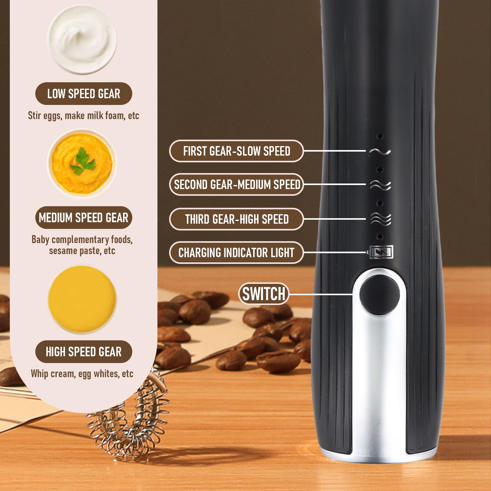 Boah, dieser elektrische Milchaufschäumer ist ja mal ein echter Alleskönner für die Küche! Mit 3 Geschwindigkeitsstufen - langsam für Eier, mittel für Marmorieren und schnell für perfekten Milchschaum. In nur 15-20 Sekunden hast du cremigen Schaum für Cappuccino, Latte oder heiße Schokolade. Der 1200mAh Akku lädt via USB und hält ewig - grüne LED zeigt volle Ladung an. Mit zwei abnehmbaren Quirlen: ballförmig für Sahne und federbelastet für Milch. Super leicht zu reinigen unter Wasser. Aus robustem ABS und Edelstahl für lange Lebensdauer. Perfekt auch für Matcha, Protein-Shakes oder Babynahrung. Einfach Knopf drücken und in Sekunden professionellen Schaum genießen - so einfach kann Kaffee-Zubereitung sein!