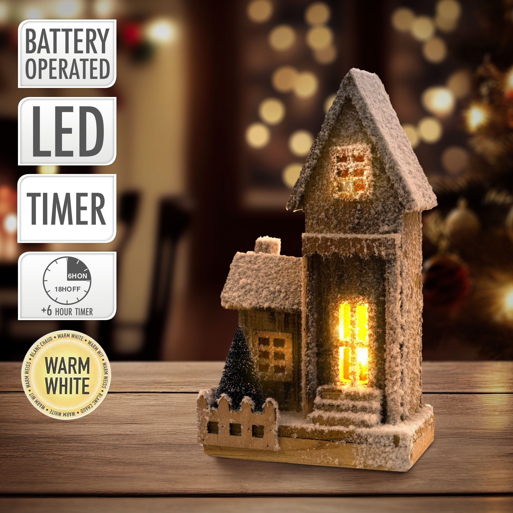 Verwandle dein Zuhause in eine winterliche Märchenlandschaft! Dieses bezaubernde Weihnachtsdorf besteht aus 3 verschiedenen Holzhäusern in weiß und Lebkuchen-Optik. Jedes Haus hat eingebaute LED-Kerzenlichter, die für eine gemütliche Atmosphäre ohne Brandgefahr sorgen. Die verschiedenen Größen (7,3×7×14,5cm, 8,2×7,2×9cm, 7×7,3×8,2cm) schaffen eine schöne, gestaffelte Optik. Angetrieben werden die Lichter von Knopfbatterien - keine lästigen Kabel! Das hochwertige Holz ist stabil und gratenfrei verarbeitet. Perfekt für Fensterbank, Esstisch, Couchtisch oder Kaminsims. Ob für Weihnachten, festliche Anlässe oder einfach nur zur gemütlichen Dekoration - dieses Weihnachtsdorf bringt sofort festliche Stimmung in deine vier Wände. Ein wunderbares Geschenk für Familie und Freunde, das garantiert Begeisterung auslöst!