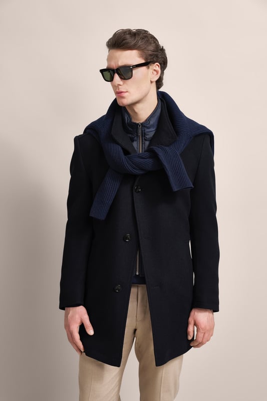 Stylish durch den Winter mit diesem bugatti Flexcity Mantel! Aus weichem Woll-Jersey mit 3-Knopf-Design und klassischem Revers. Das Besondere: Der wattierte Westeneinsatz aus Nylon ist herausnehmbar - so kannst du die Wärme genau regulieren. Mit Bugatti Logo am Unterkragen und praktischem Rückenschlitz. Die offene Kantenverarbeitung (Taglio Vivo) sieht super edel aus. Im Schulterbereich sind Stretcheinsätze für mehr Bewegungsfreiheit. Zwei seitliche Eingrifftaschen und zwei Innentaschen mit Reißverschluss (Safety Pocket) bieten reichlich Stauraum. Halb gefüttert und trotzdem warm. Perfekt für Business oder Freizeit - ein echter Allrounder der sich sehen lassen kann!