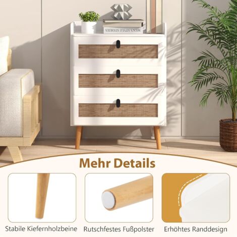 Diese süße Kommode ist perfekt für jedes Kinderzimmer! Mit 3 praktischen Schubladen hast du genug Platz für Klamotten, Spielzeug und Windeln. Die Mischung aus Weiß und Holz sieht modern und gemütlich zugleich aus. Mit 80cm Breite und 85cm Höhe passt sie super in jede Ecke. Die runden Holzgriffe sind ideal für kleine Kinderhände. Aus stabilem Holzmaterial gebaut, hält sie jahrelang. Einfach selbst zusammenzubauen - kein Problem! Ob fürs Baby- oder Kinderzimmer, diese Kommode wächst mit. Mach Ordnung im Kinderzimmer und schaff eine gemütliche Atmosphäre. Perfekt für Jungs und Mädchen!