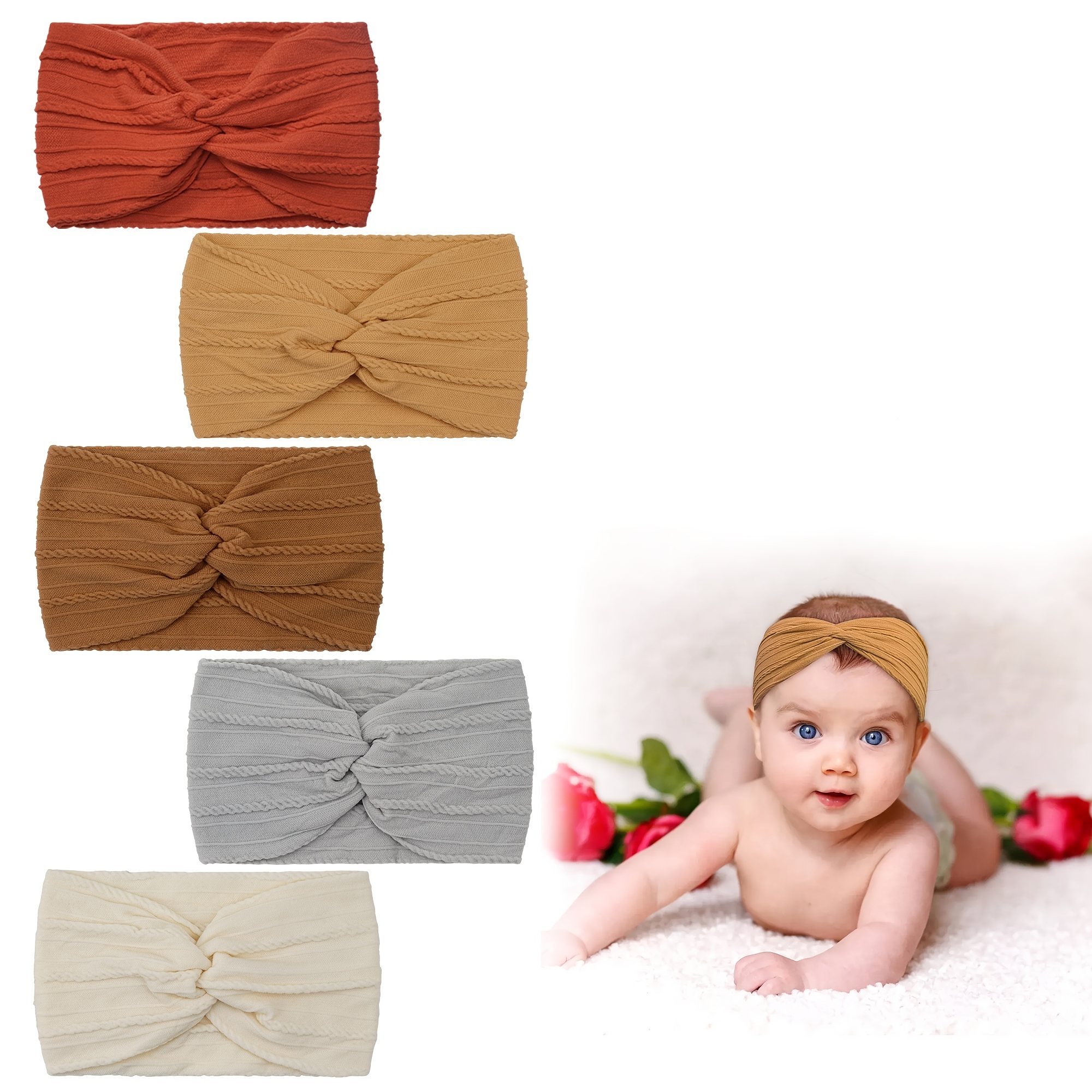 3 Stück Baby Stirnbänder Mit Blumen - Weiches Nylon Für Neugeborene