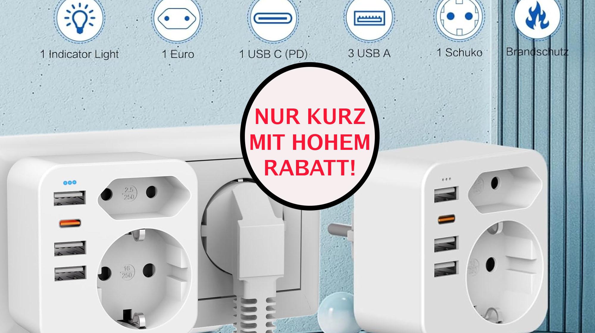 • Steckdosenleiste Mit 3 USB Ports - 6-fach Adapter Mit Schalter (2400W/10A)