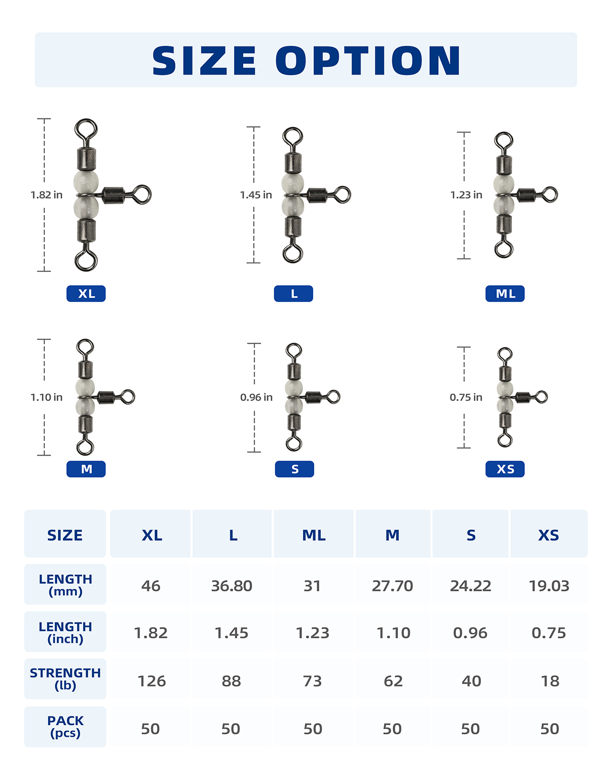 • Briny River 60 Stück 3-Wege-Wirbel Set - Kreuzschnurwirbel Für Angelausrüstung